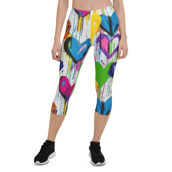 Ausverkauft - Graffiti Hearts v2 Damen Capri Leggings