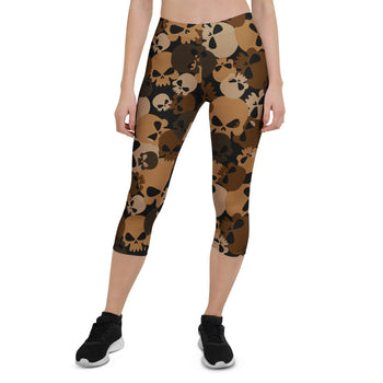 Ausverkauft - Brown Skull Damen Capri Leggings