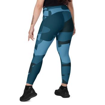 - Blue Camouflage Damen V-Bund Leggings mit Taschen