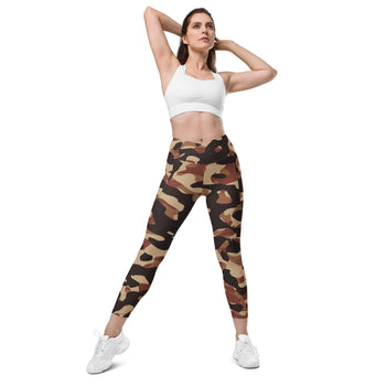 Ausverkauft - Brown Camouflage Damen V-Bund Leggings mit Taschen