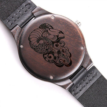 Ausverkauft - Sternzeichen Symbol Widder Holz Armbanduhr