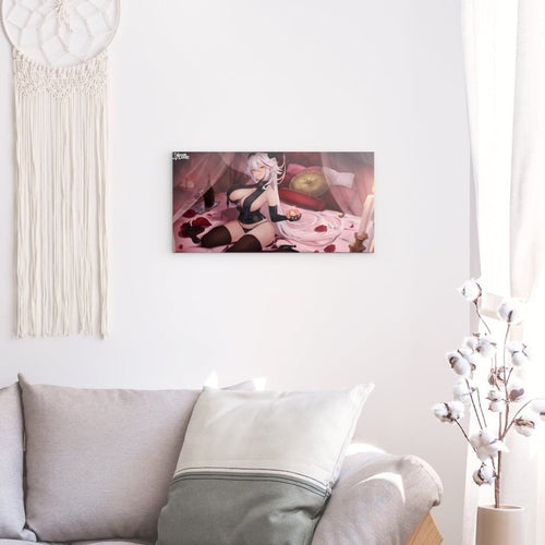 Dieses wunderschöne Poster zeigt die beliebte Azur Lane-Schiffsmädchen Ägir in einer entspannten Pose auf einem Bett. Mit ihren langen, blauen Haaren und ihrem verführerischen Lächeln ist Ägir ein echter Hingucker.