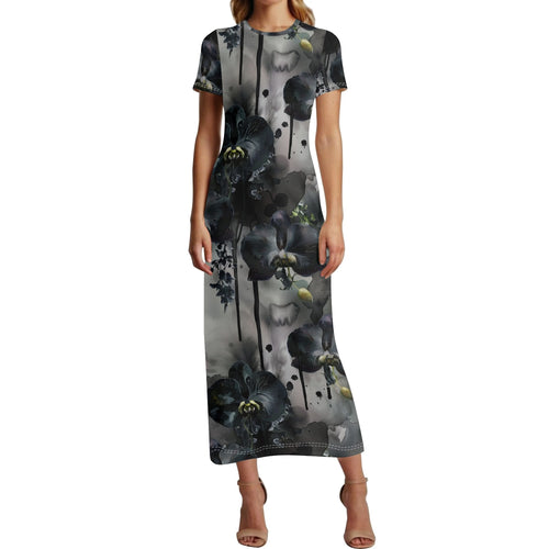 Erlebe zeitlose Eleganz und mühelosen Stil mit unserem Black Garden Short Sleeve Long Dress für Damen.