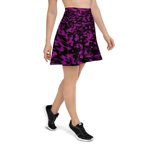 Dieser Black Violet Camouflage Skater Rock ist ein absolutes Must-Have für jeden trendbewussten Kleiderschrank! Mit seinem weichen Stoff und dem elastischen Bund bietet er optimalen Tragekomfort und schmiegt sich perfekt an den Körper an. Der Rock hat eine Länge bis zur Mitte der Oberschenkel und ist mit einem Überdeckstich-Saum versehen, der ihm eine besondere Raffinesse verleiht.