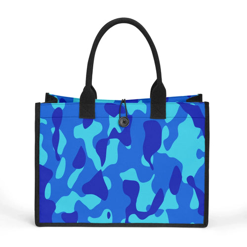 Entdecken Sie den urbanen Dschungel mit unserer "Blaue Camouflage" Premium Canvas Shopper Tasche.