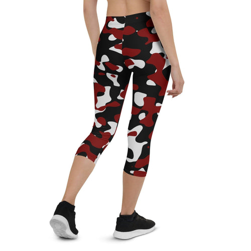 Verleihe deinem sportlichen oder lässigen Look eine stylische Note mit unseren Schwarz Rot Weiß Camouflage Damen Capri Leggings!