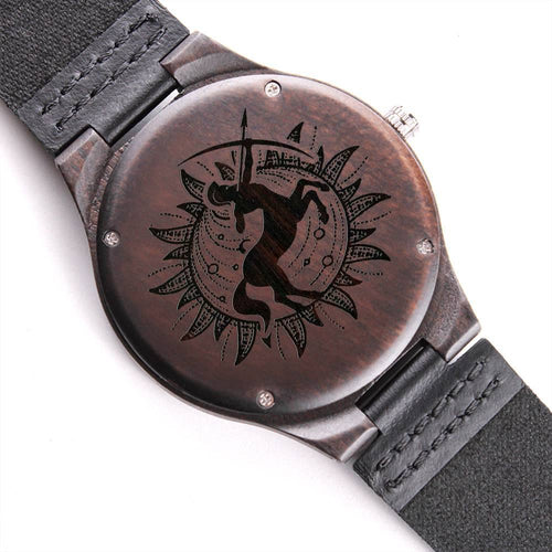 Die Gravierte Holzarmbanduhr mit Sternzeichen Schütze ist ein vielseitiges Accessoire, das perfekt für modisches, alltägliches Tragen ist. Umhüllt von sattem Sandelholz und gepaart mit einem Echtlederarmband - dieses Stück ist so eindrucksvoll, wie der Mann, der es trägt.