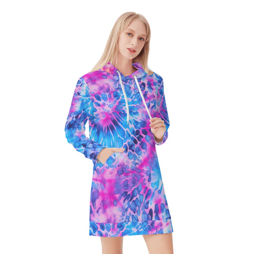 Dieses Tie Dye Velvet Hoodie Dress für Damen und Mädchen ist ein außergewöhnliches Kleidungsstück für die kühleren Tage.