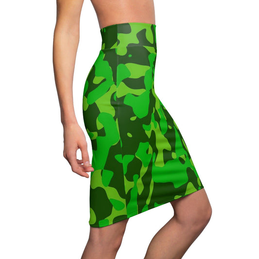 Verleihe deinem Outfit eine elegante und komfortable Note mit unserem Lime Green Camouflage Bleistiftrock! Dieser hochwertige Bleistiftrock ist eng am Körper geschnitten und sitzt dank seiner Mid-Waist-Passform optimal. Inspiriert von der Freiheit der Kreativität, ist er perfekt dafür geeignet, bei jeder Gelegenheit stilvoll aufzufallen – ob im Büro oder bei...