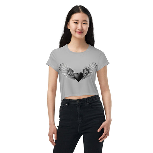 Unser Black Heart Crop Top ist die perfekte Mischung aus Stil und Eleganz. Das markante Design mit einem schwarzen Herzen, das von zarten Flügeln umgeben ist. Der verkürzte Schnitt setzt deine Taille gekonnt in Szene und verleiht dir einen modischen Look, der sich ideal für warme Tage und Nächte eignet....