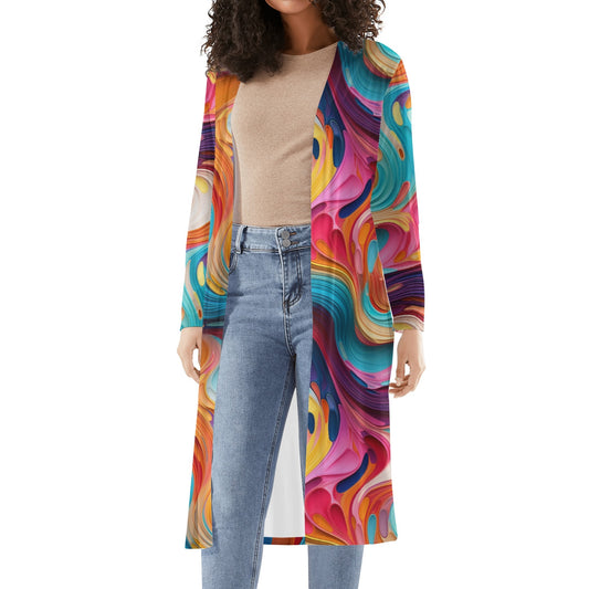 Dieser lange, leichte Kimono Cardigan im ausdrucksstarken Farbenspiel Design ist ein künstlerischer Blickfang für deine Garderobe. Gefertigt aus einem angenehmen Polyester-Spandex-Mix mit einem lebendigen Muster, bietet dieser langärmlige Cardigan ein komfortables und atmungsaktives Tragegefühl und ist ideal für das Layering. Sein lässiger Chic-Stil macht ihn zum perfekten Begleiter für unterschiedlichste...