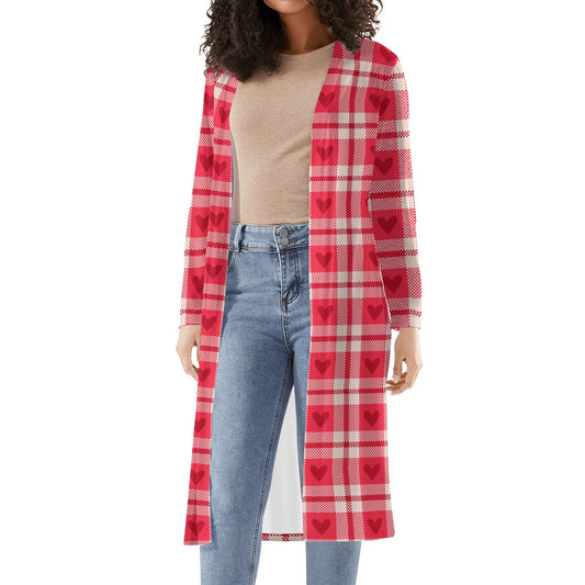 Dieser lange, leichte Kimono Cardigan im verspielten roten Karo Herzchen Design ist ein charmanter Blickfang für deine Garderobe. Gefertigt aus einem angenehmen Polyester-Spandex-Mix mit einem fröhlichen Muster, bietet dieser langärmlige Cardigan ein komfortables und atmungsaktives Tragegefühl und ist ideal für das Layering. Sein lässiger Chic-Stil macht ihn zum perfekten Begleiter...