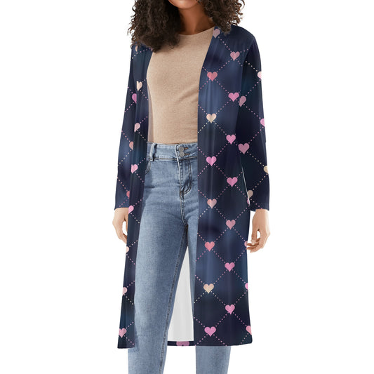 Dieser lange, leichte Kimono Cardigan im charmanten Lined Hearts Design ist ein liebevoller Blickfang für deine Garderobe. Gefertigt aus einem angenehmen Polyester-Spandex-Mix mit einem verspielten Muster, bietet dieser langärmlige Cardigan ein komfortables und atmungsaktives Tragegefühl und ist ideal für das Layering. Sein lässiger Chic-Stil macht ihn zum perfekten Begleiter für...