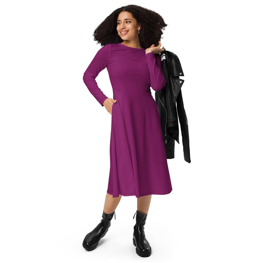 Dieses Midikleid mit langem Ärmel ist ein Statement-Stück für jede Garderobe. Gefertigt aus einem hochwertigen, mittelschweren Jersey-Strick, bietet es optimalen Tragekomfort. Das Design mit Boot-Ausschnitt, seitlichen Taschen und ausgestelltem Unterteil ist elegant und praktisch zugleich. Mit 95 % Polyester und 5 % Elastan ist der Stoff dehnbar und sitzt perfekt...