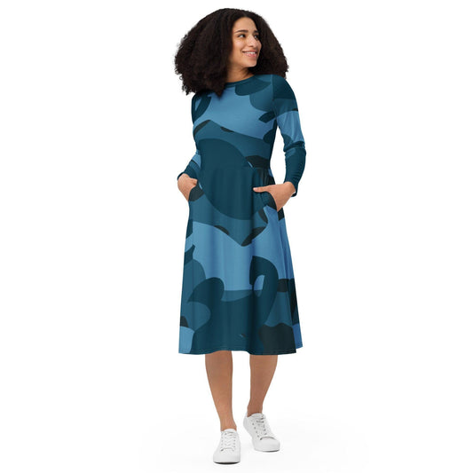 Das blaue Camouflage Midikleid ist ein echter Hingucker. Gefertigt aus einem hochwertigen, mittelschweren Jersey-Strick, ist es elegant und bequem zugleich. Der klassische Boot-Ausschnitt schmeichelt dem Dekolleté und die eng anliegende Taille betont die weibliche Silhouette. Das trendige Camouflage-Muster verleiht dem Kleid eine coole Note und macht es zu einem perfekten...