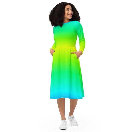 Das Regenbogen Midikleid ist der perfekte Begleiter für die kühleren Tage. Gefertigt aus einem hochwertigen, mittelschweren Jersey-Strick bietet es sowohl Komfort als auch Stil. Der elegante Boot-Ausschnitt schmeichelt dem Dekolleté und die eng anliegende Taille betont die weibliche Silhouette. Die langen Ärmel geben diesem Kleid eine edle Note und halten...