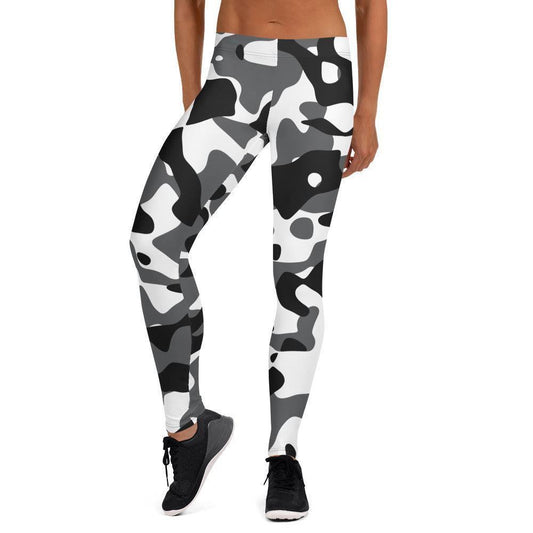 Diese Damen Leggings mit Schwarz Grau Weiß Camouflage Design sind der perfekte Begleiter für alle, die aktiv und stilbewusst sein möchten. Das Muster aus verschiedenen Farbtönen verleiht der Leggings einen coolen und trendigen Look, während das hochwertige Material für optimalen Tragekomfort und Bewegungsfreiheit sorgt. Ob beim Sport, Yoga oder als...