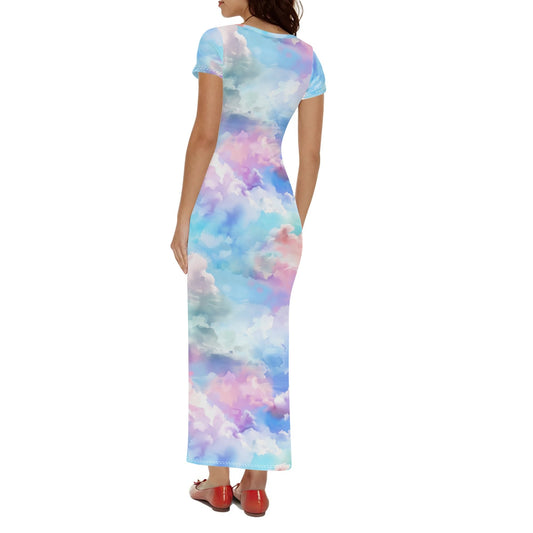Erlebe zeitlose Eleganz und mühelosen Stil mit unserem Clouds Short Sleeve Long Dress für Damen. Dieses Kleid ist aus einem weichen und bequemen Stoff gefertigt, der den ganzen Tag über ein angenehmes Tragegefühl bietet. Das stilvolle Design überzeugt mit einer figurbetonten Passform, einem Rundhalsausschnitt und einer hüftbetonten Silhouette – perfekt...