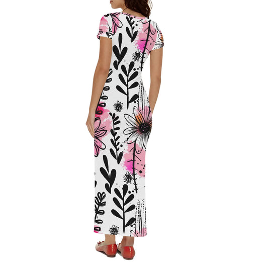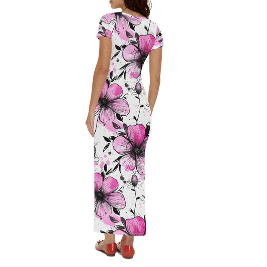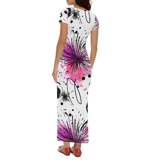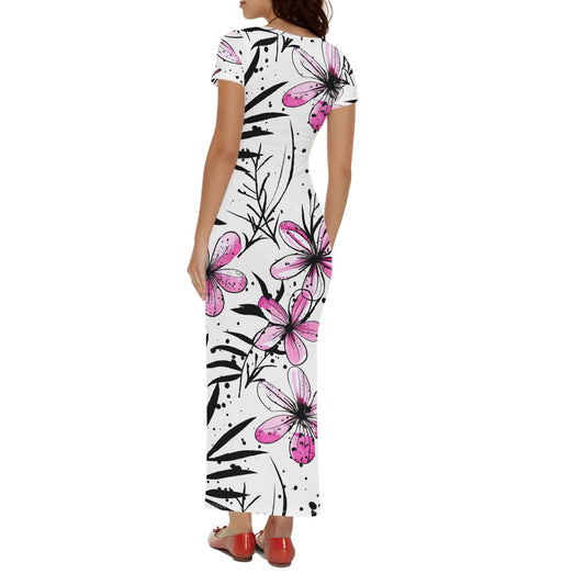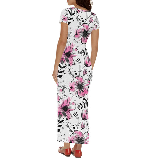 Erlebe zeitlose Eleganz und mühelosen Stil mit unserem Graffiti Blüten v2 Short Sleeve Long Dress für Damen. Dieses Kleid ist aus einem weichen und bequemen Stoff gefertigt, der den ganzen Tag über ein angenehmes Tragegefühl bietet. Das stilvolle Design überzeugt mit einer figurbetonten Passform, einem Rundhalsausschnitt und einer hüftbetonten Silhouette...