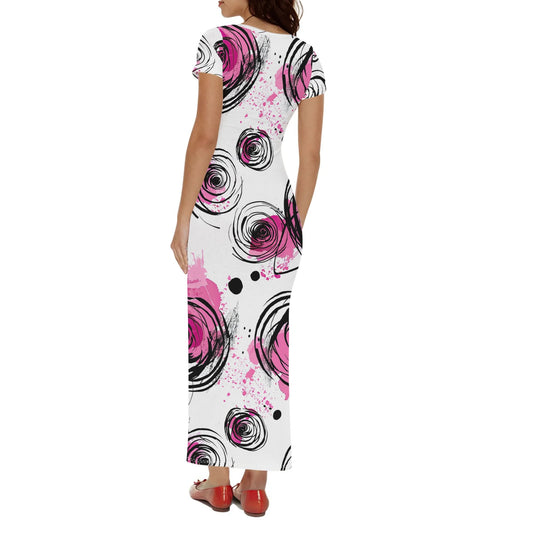 Erlebe zeitlose Eleganz und mühelosen Stil mit unserem Graffiti Blüten v5 Short Sleeve Long Dress für Damen. Dieses Kleid ist aus einem weichen und bequemen Stoff gefertigt, der den ganzen Tag über ein angenehmes Tragegefühl bietet. Das stilvolle Design überzeugt mit einer figurbetonten Passform, einem Rundhalsausschnitt und einer hüftbetonten Silhouette...