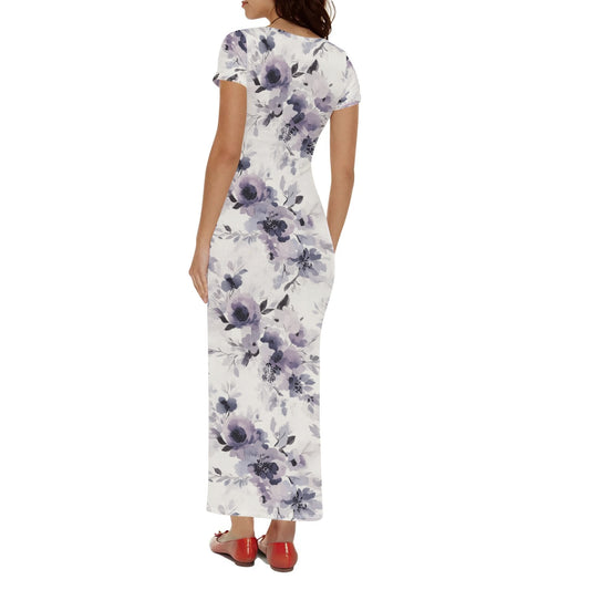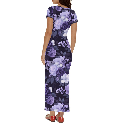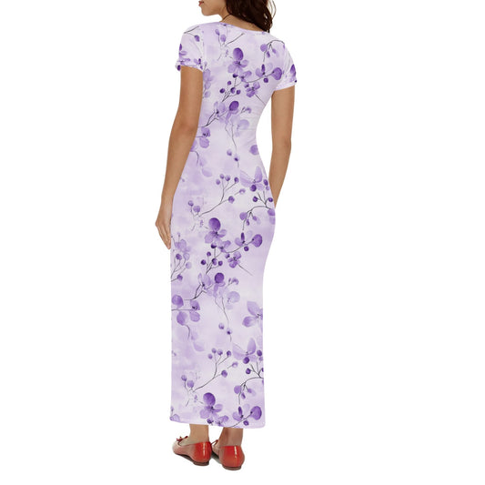 Erlebe zeitlose Eleganz und mühelosen Stil mit unserem Lilac Flowers v3 Short Sleeve Long Dress für Damen. Dieses Kleid ist aus einem weichen und bequemen Stoff gefertigt, der den ganzen Tag über ein angenehmes Tragegefühl bietet. Das stilvolle Design überzeugt mit einer figurbetonten Passform, einem Rundhalsausschnitt und einer hüftbetonten Silhouette...