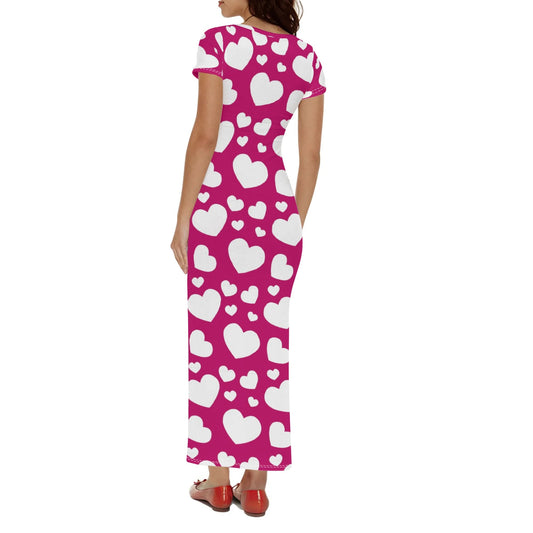 Erlebe zeitlose Eleganz und mühelosen Stil mit unserem Hearts Short Sleeve Long Dress für Damen. Dieses Kleid ist aus einem weichen und bequemen Stoff gefertigt, der den ganzen Tag über ein angenehmes Tragegefühl bietet. Das stilvolle Design überzeugt mit einer figurbetonten Passform, einem Rundhalsausschnitt und einer hüftbetonten Silhouette – perfekt...
