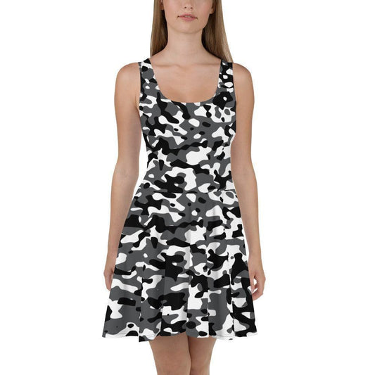 Ein Kleid, das die Herzen höherschlagen lässt – unser Schwarz Grau Weiß Camouflage Skater Kleid ist das Must-Have! Der weiche, elastische Stoff sorgt für höchsten Tragekomfort und eine perfekte Passform, die sich angenehm an deinen Körper schmiegt. Der ausgestellte Rock in mittlerer Länge schmeichelt der Figur und verleiht dem Kleid...