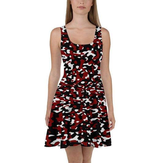Ein Kleid, das die Herzen höherschlagen lässt – unser Schwarz Rot Weiß Camouflage Skater Kleid ist das Must-Have! Der weiche, elastische Stoff sorgt für höchsten Tragekomfort und eine perfekte Passform, die sich angenehm an deinen Körper schmiegt. Der ausgestellte Rock in mittlerer Länge schmeichelt der Figur und verleiht dem Kleid...