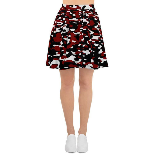 Dieser Schwarz Rot Weißer Camouflage Skater Rock ist ein absolutes Must-Have für jeden trendbewussten Kleiderschrank! Mit seinem weichen Stoff und dem elastischen Bund bietet er optimalen Tragekomfort und schmiegt sich perfekt an den Körper an. Der Rock hat eine Länge bis zur Mitte der Oberschenkel und ist mit einem Überdeckstich-Saum...