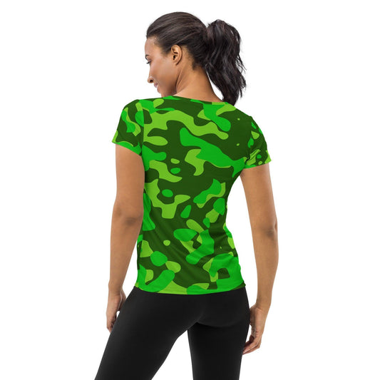 Das Lime Green Camouflage Sport T-Shirt für Damen ist die perfekte Wahl für alle Frauen, die sich gerne sportlich betätigen und dabei stilvoll aussehen möchten. Das T-Shirt hat ein trendiges Camouflage-Muster in verschiedenen Farbtönen, das nicht nur gut aussieht, sondern auch eine coole und kampfbereite Atmosphäre vermittelt. Es besteht aus...