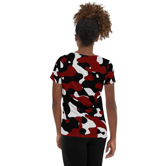 Das Schwarz Rot Weiß Camouflage Sport T-Shirt für Damen ist die perfekte Wahl für alle Frauen, die sich gerne sportlich betätigen und dabei stilvoll aussehen möchten. Das T-Shirt hat ein trendiges Camouflage-Muster in verschiedenen Farbtönen, das nicht nur gut aussieht, sondern auch eine coole und kampfbereite Atmosphäre vermittelt. Es besteht...