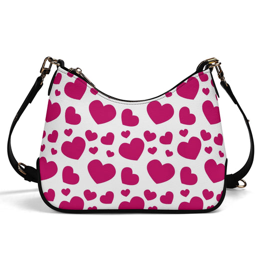 Erhebe deinen Stil mit der "Pink Heart" Umhängetasche, einer eleganten Kreation aus hochwertigem PU-Leder. Das verspielte Allover-Print mit zarten Herzchen verleiht der Tasche einen romantischen und femininen Touch. Die Tasche ist mit schicken Kettenverzierungen versehen und bietet sowohl Modebewusstsein als auch Funktionalität. Das verstellbare und abnehmbare Schulterband, sowie das zusätzliche...