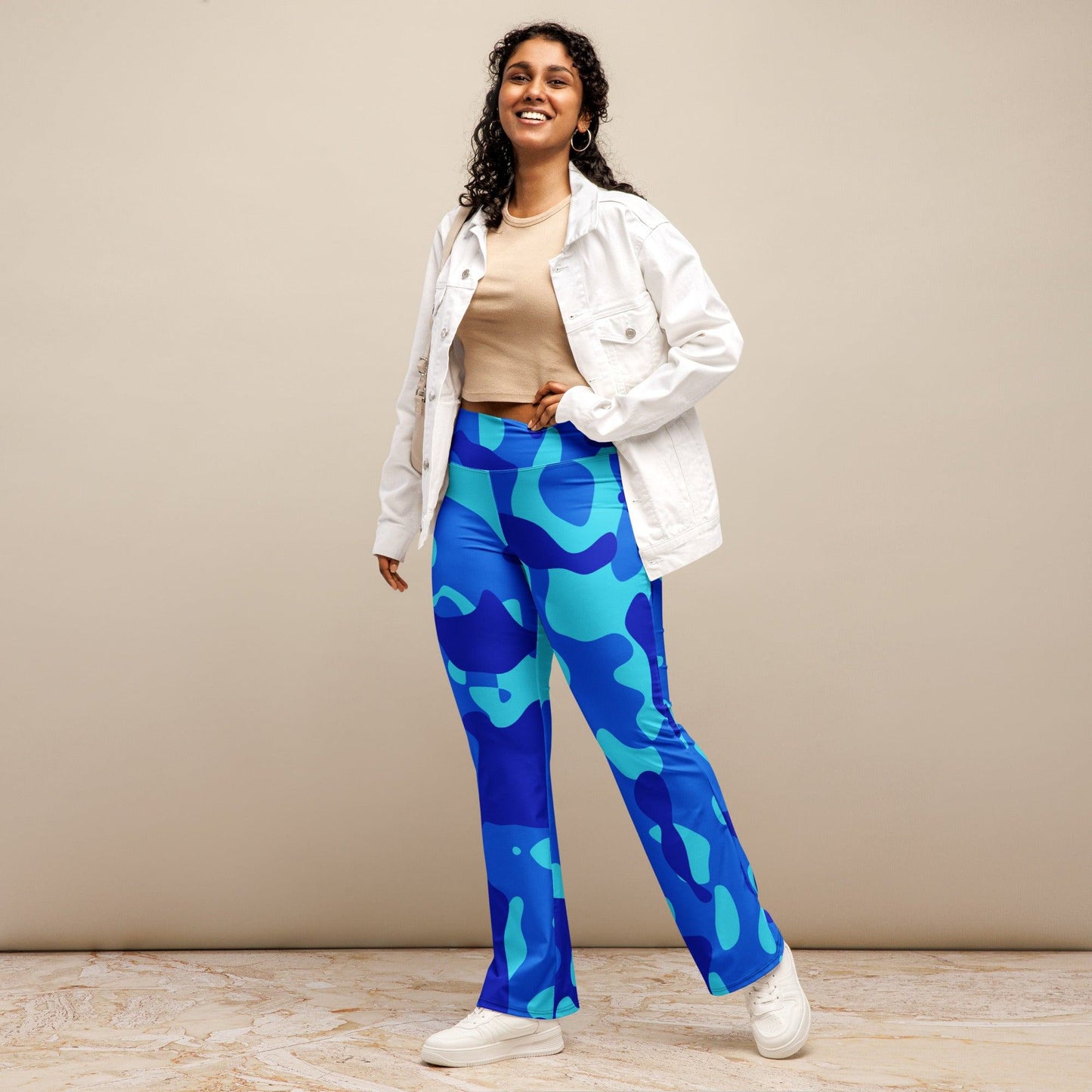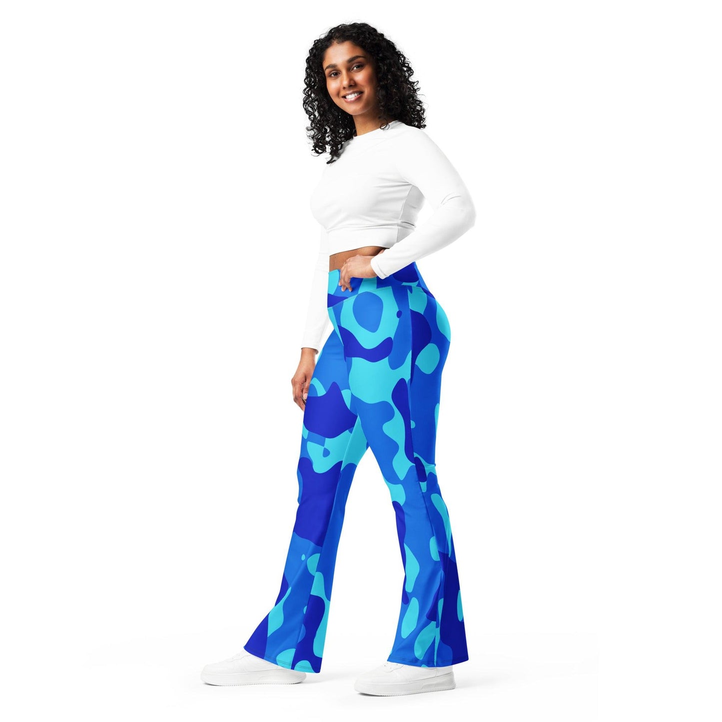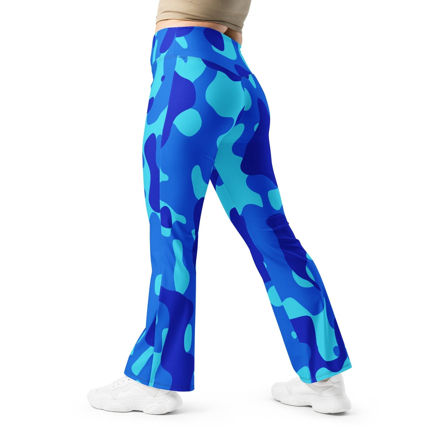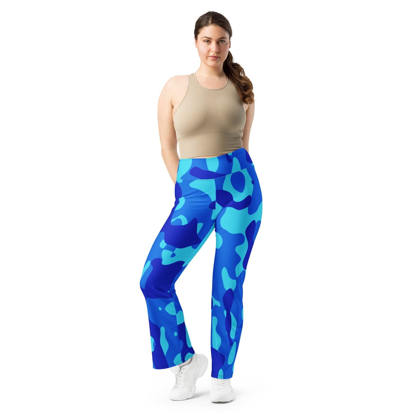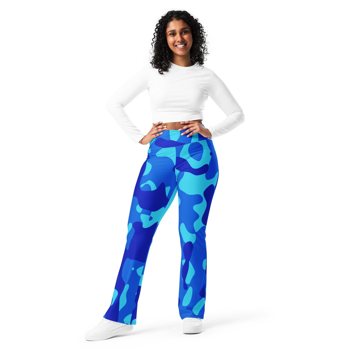 Erlebe Komfort und Stil mit unseren Blue Camouflage High Waist Flare Leggings