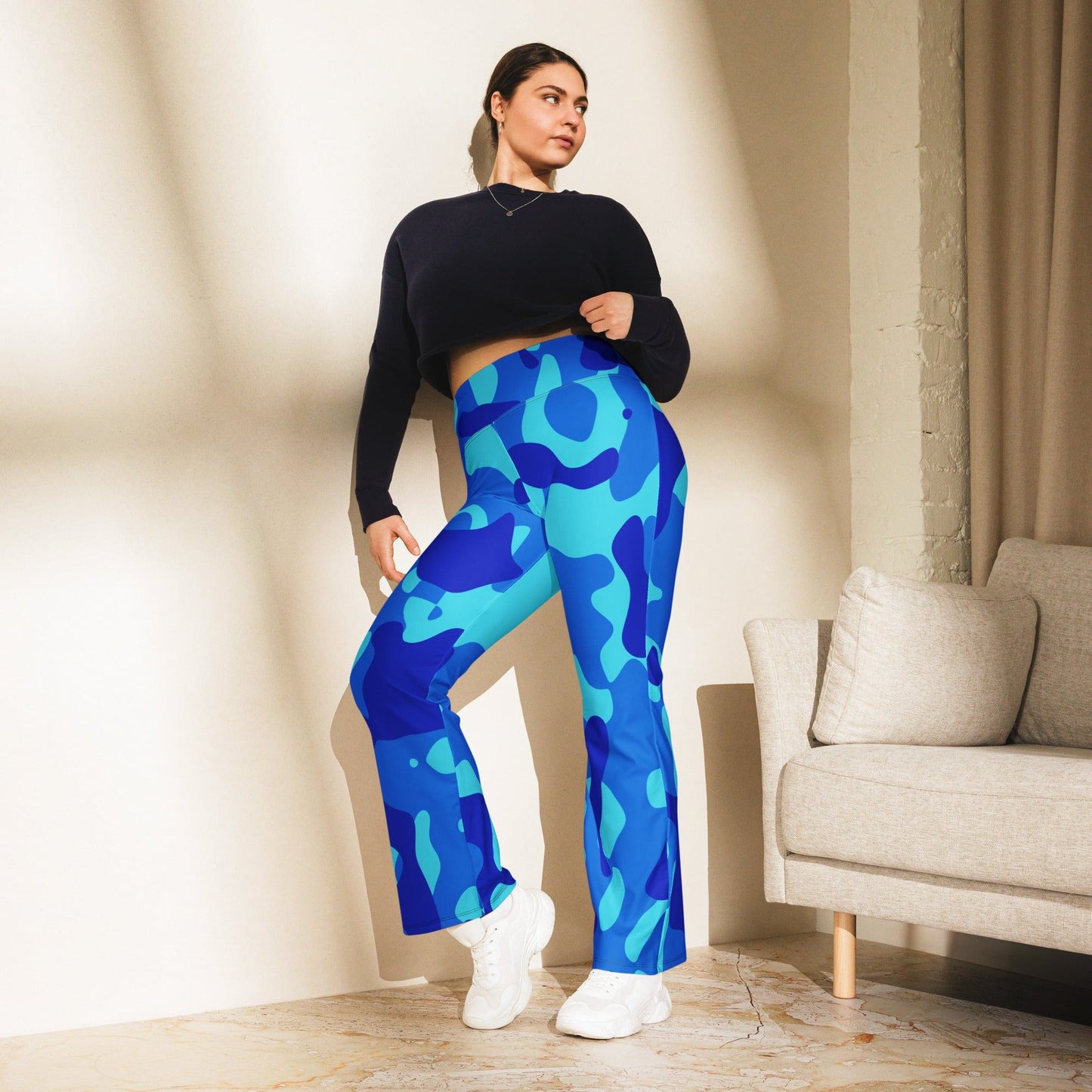 Investiere in Komfort und Stil: Bestelle jetzt deine Blue Camouflage High Waist Flare Leggings und erlebe die perfekte Kombination aus Nachhaltigkeit, Funktion und Fashion!