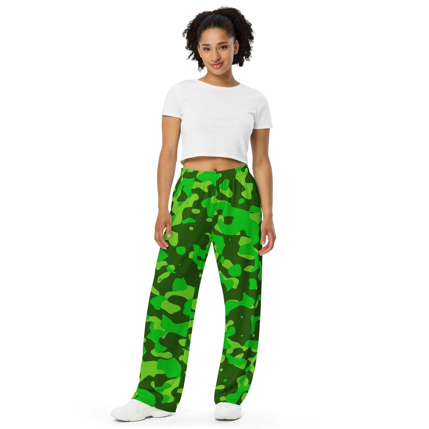 Diese Green Camouflage Hose mit weitem Bein ist perfekt für einen lässigen Look und bietet gleichzeitig Komfort und Eleganz. Das weite Bein sorgt für eine luftige Passform und Bewegungsfreiheit.