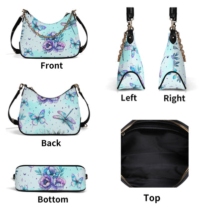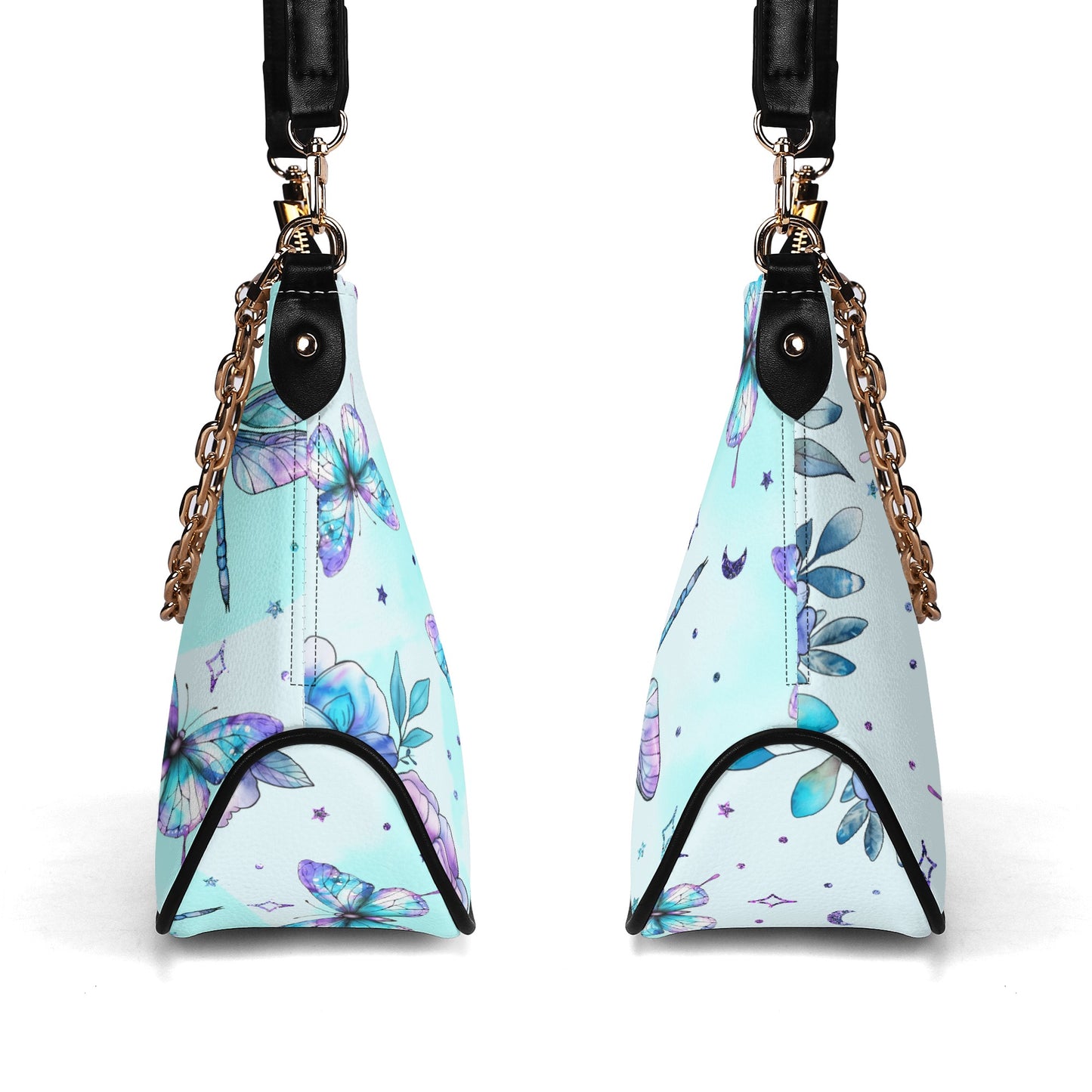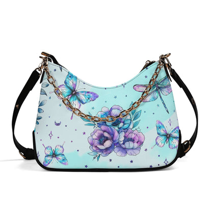 Die Tasche ist mit schicken Kettenverzierungen versehen und bietet sowohl Modebewusstsein als auch Funktionalität.
