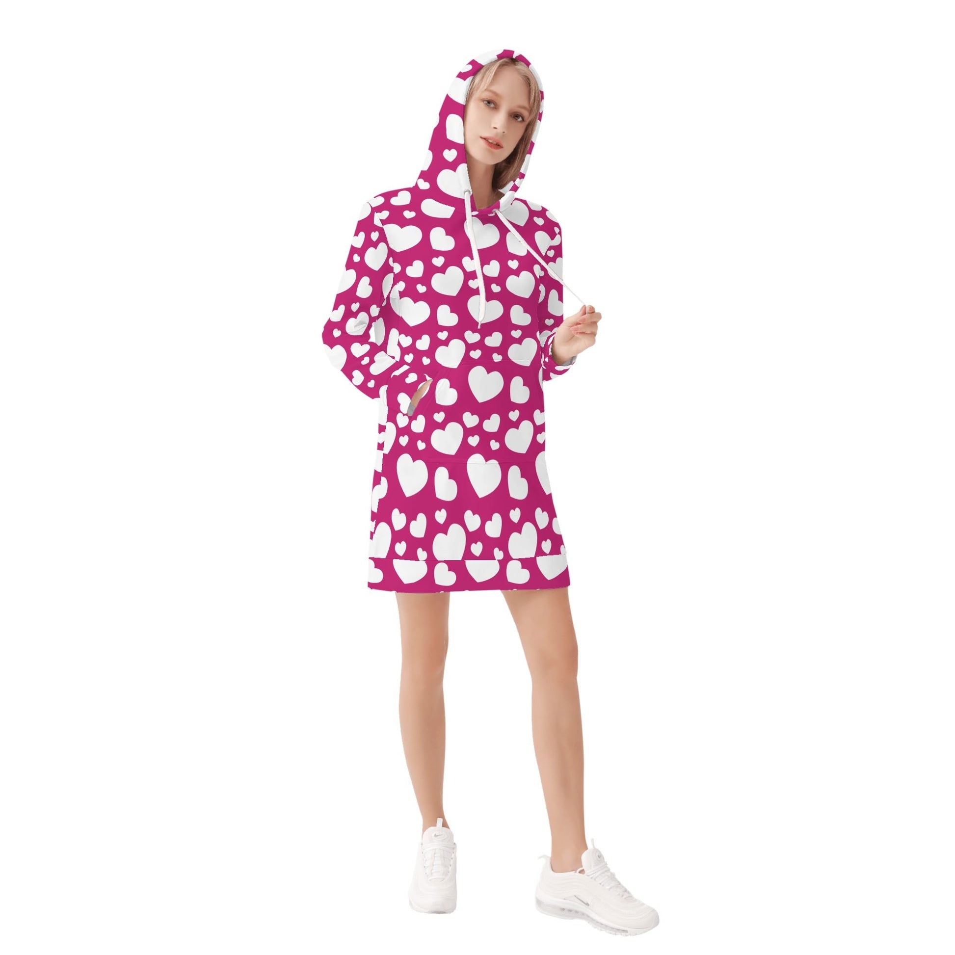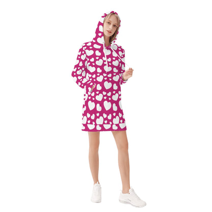 Dieses weiße Hearts Velvet Hoodie Dress für Damen und Mädchen ist ein außergewöhnliches Kleidungsstück für die kühleren Tage.