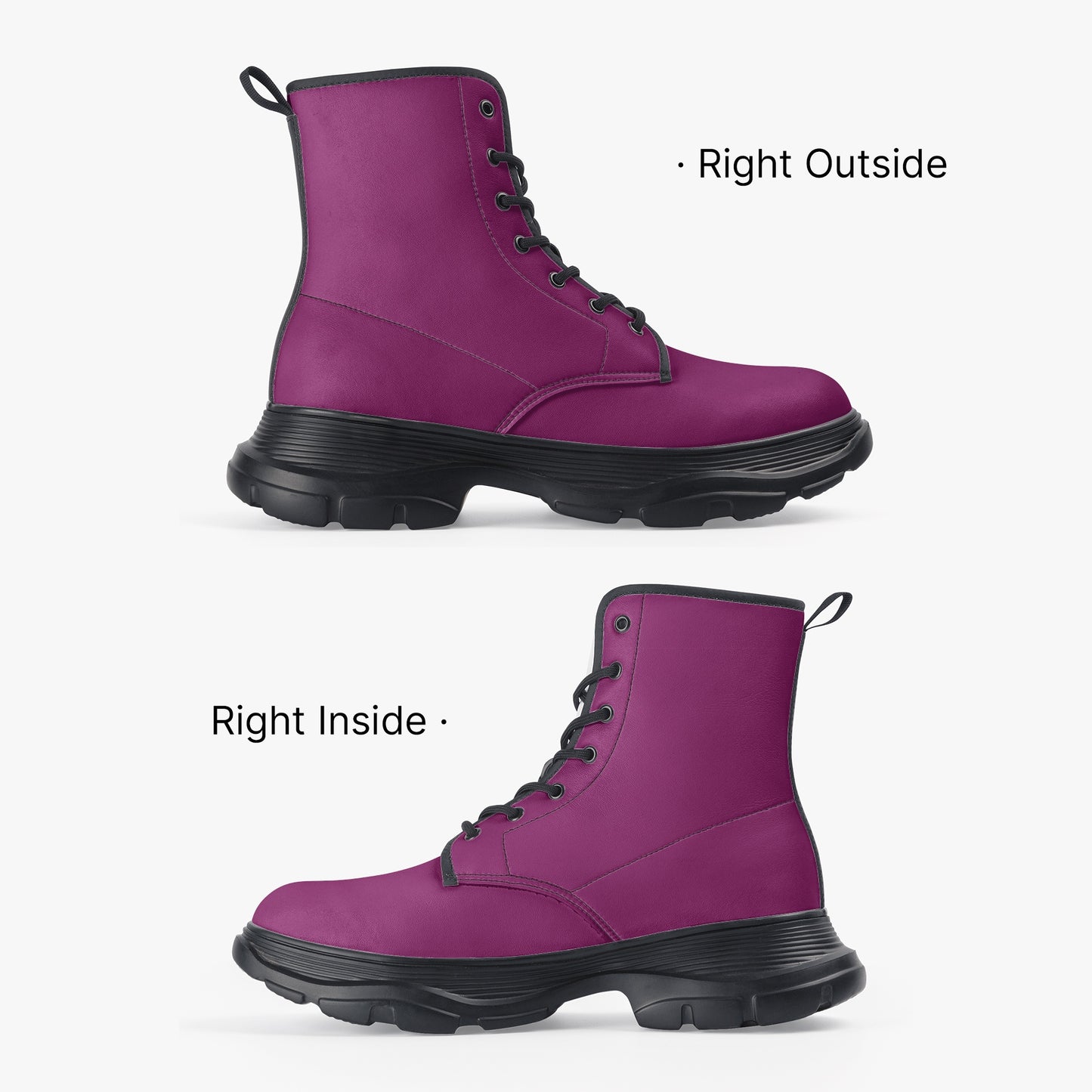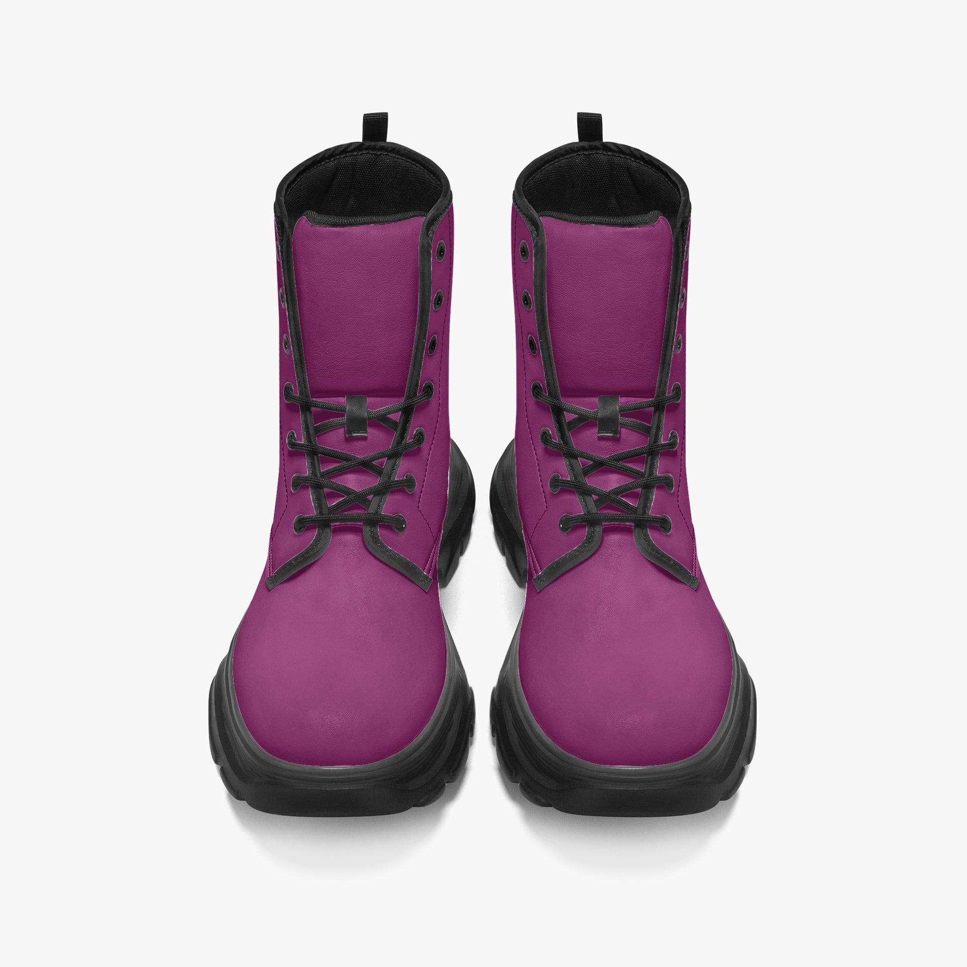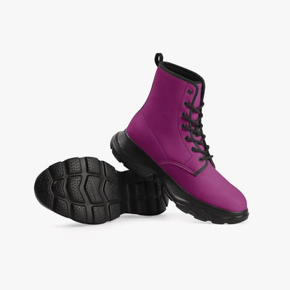 Tauchen Sie ein in die Welt des modernen, urbanen Stils mit unseren atemberaubenden Aubergine Leather Chunky Boots.