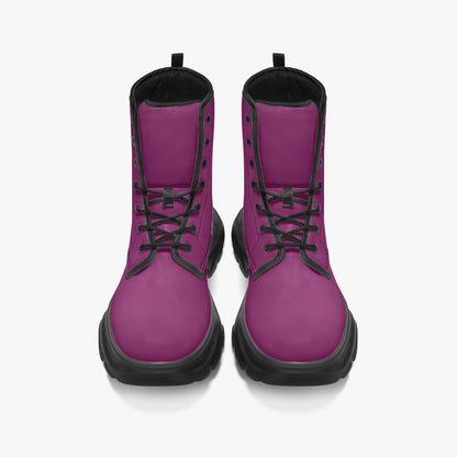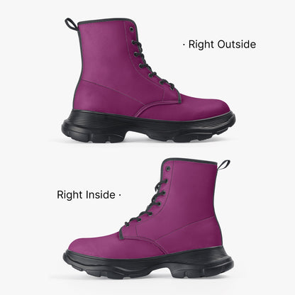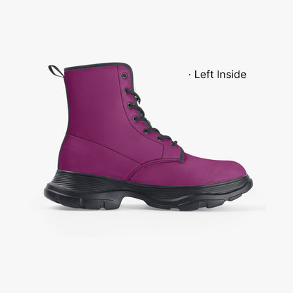 Aubergine Leather Chunky Boots