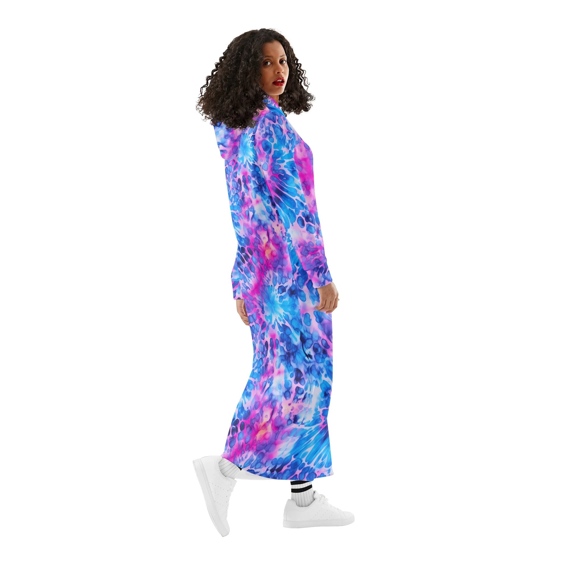 Dieses bequeme und leichte lange Hoodie-Kleid mit einer lebendigen Farbexplosion bringt gute Laune in jeden Tag.