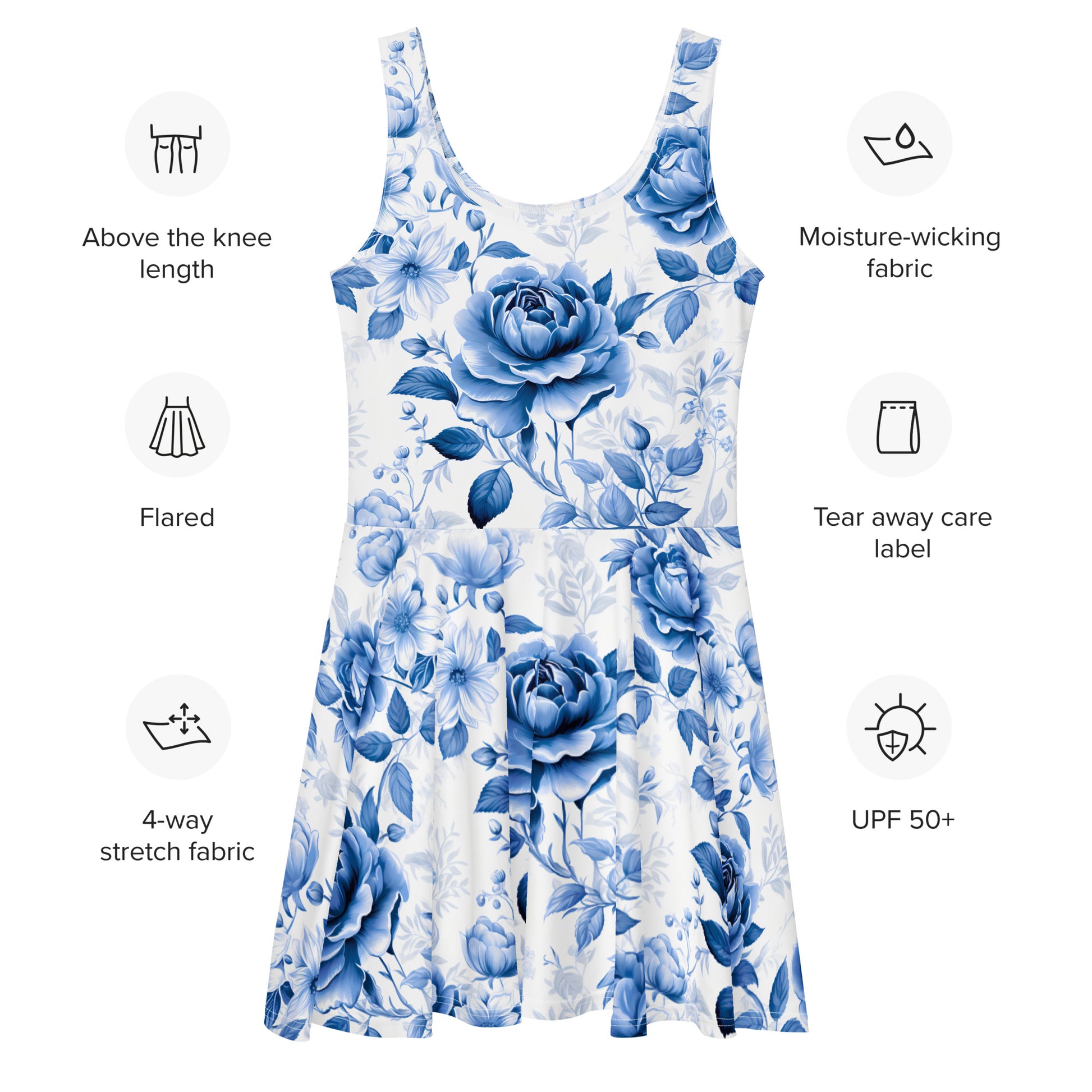 Kleide dich stilvoll mit unserem Blaue Rose v3 Skater Kleid!