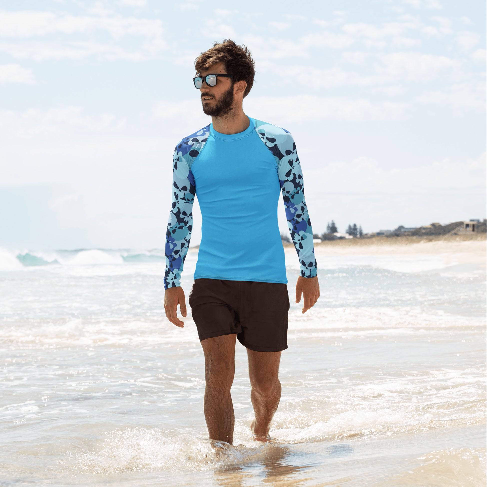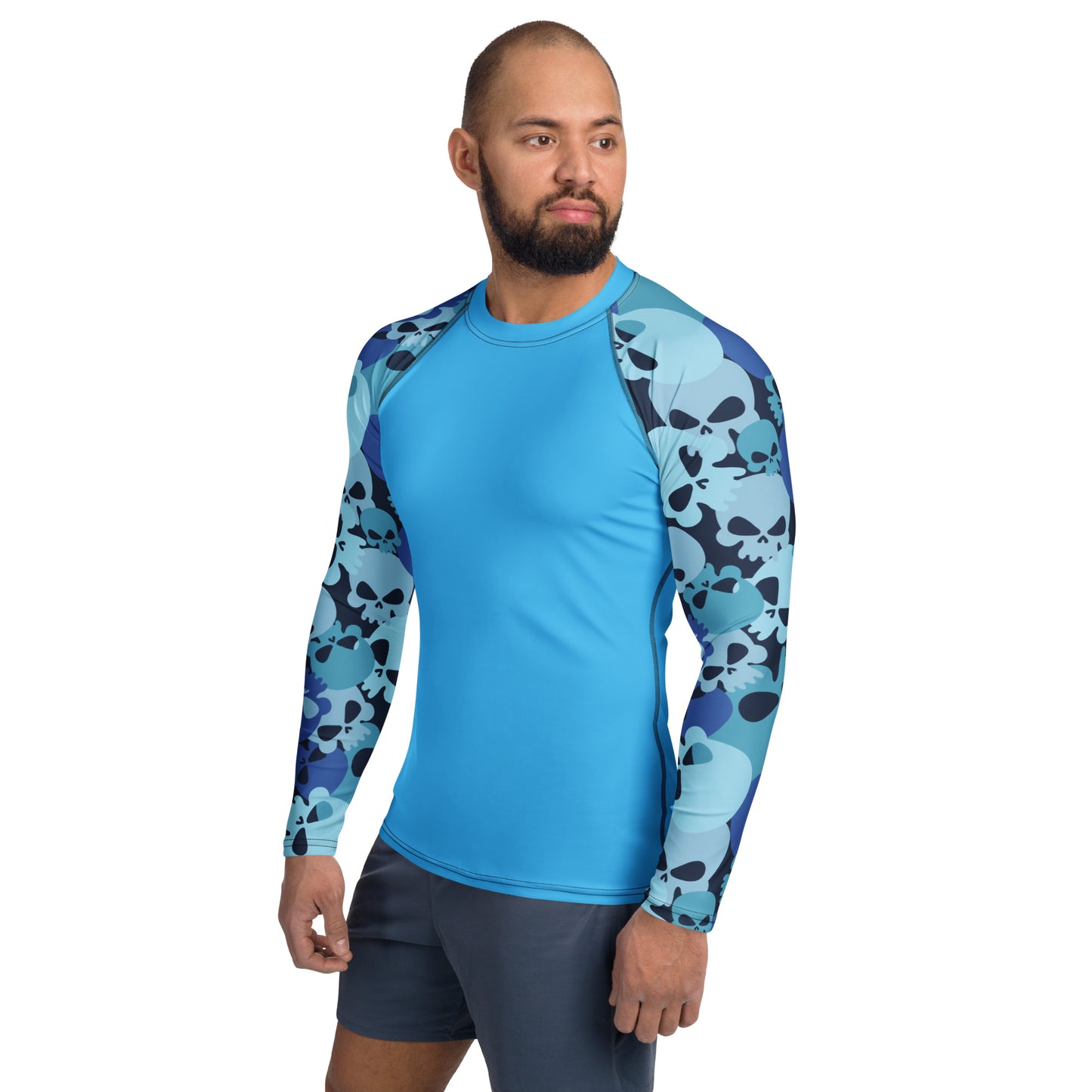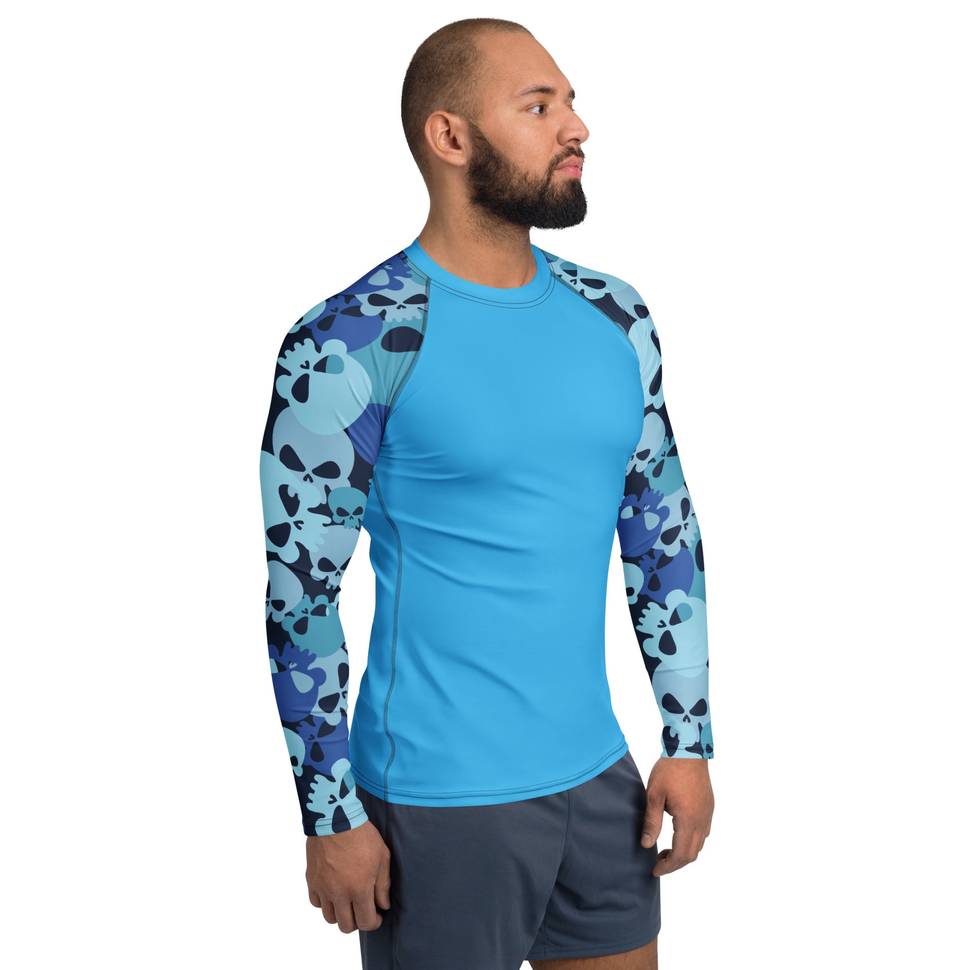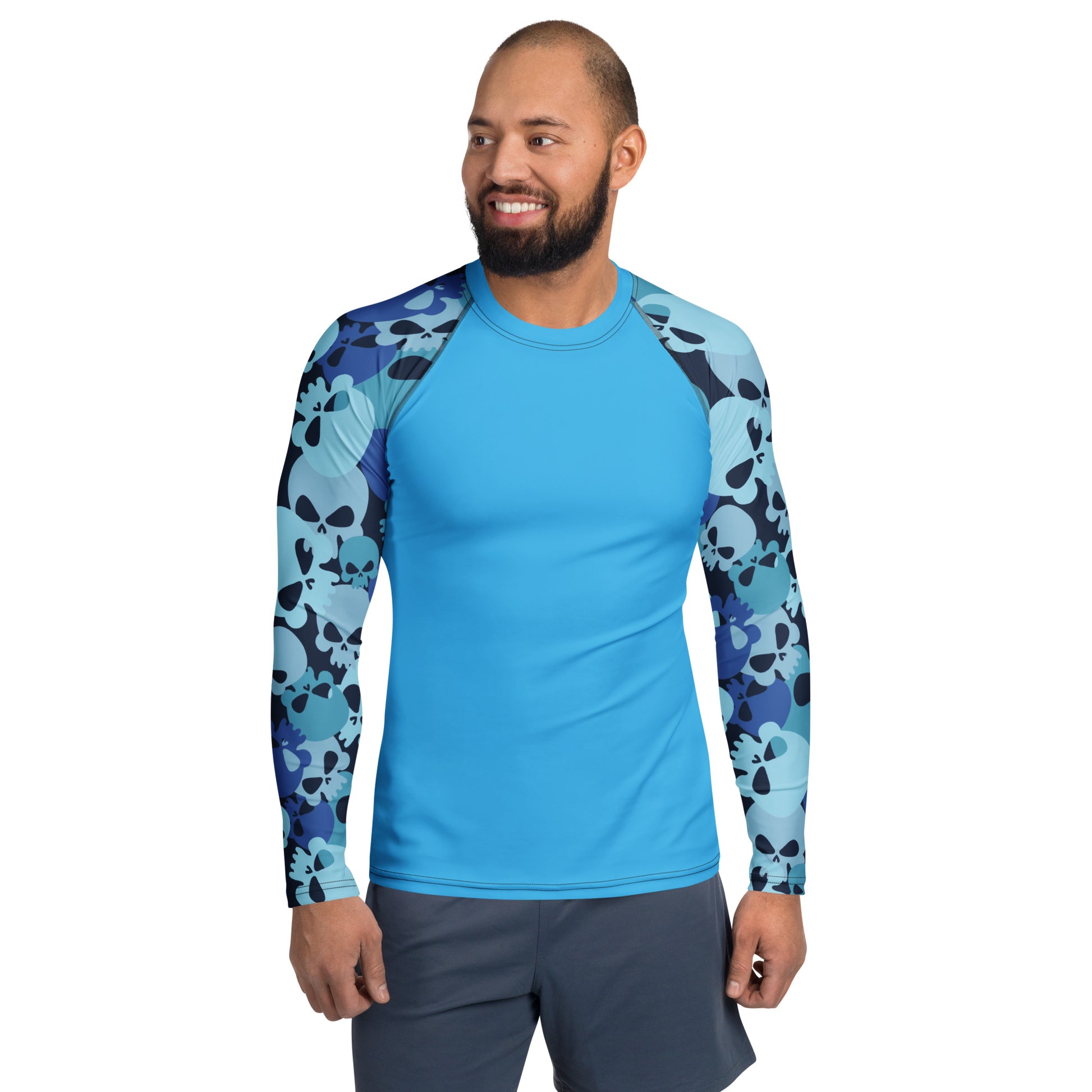 Bereit für dein nächstes Abenteuer? Hol dir jetzt dein Blue Skull Herren Rash Guard und genieße Schutz mit Style!