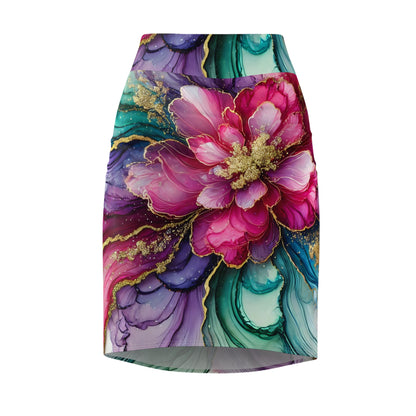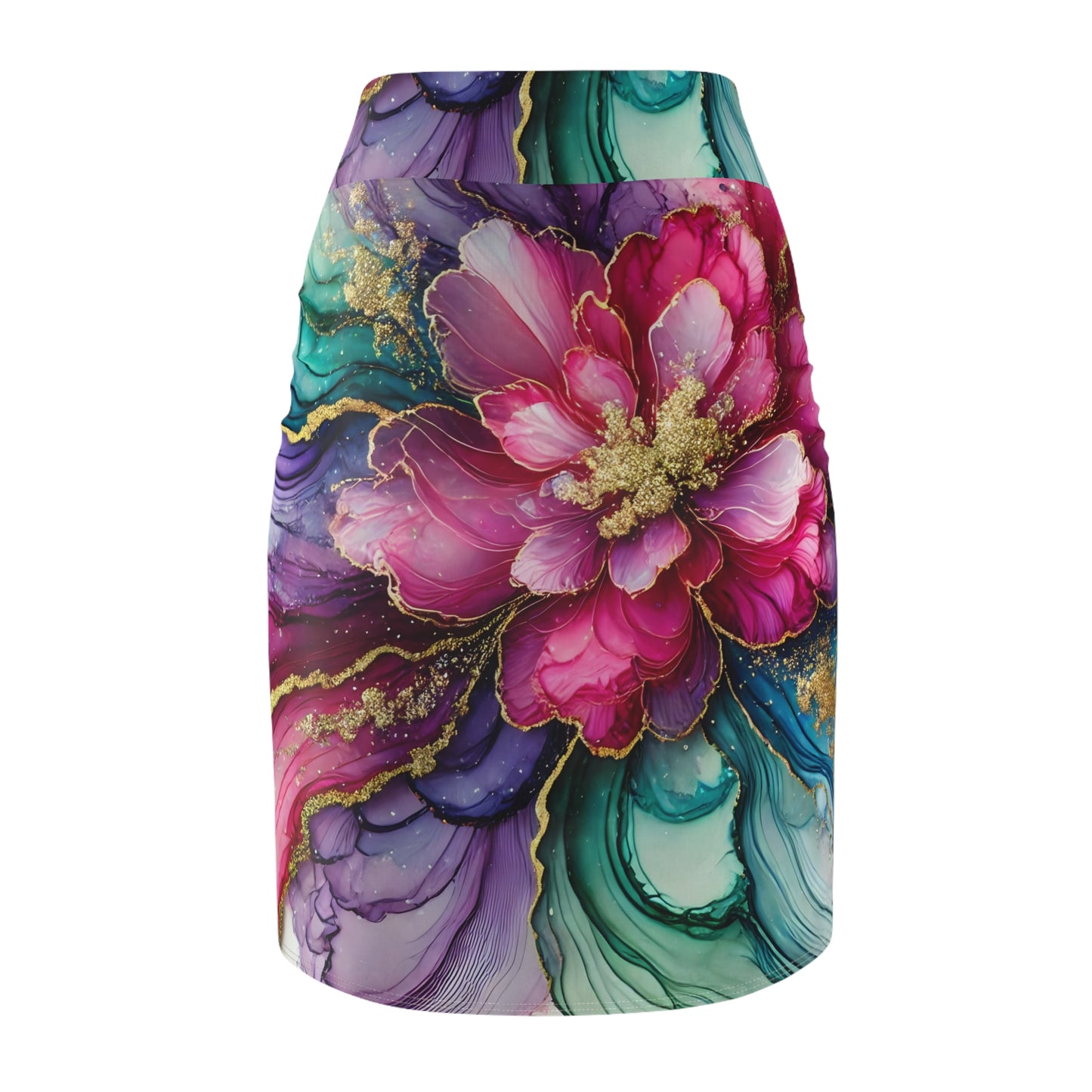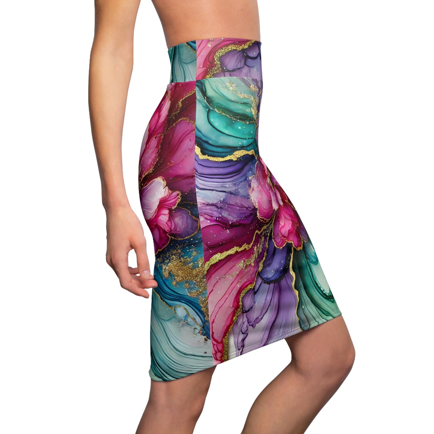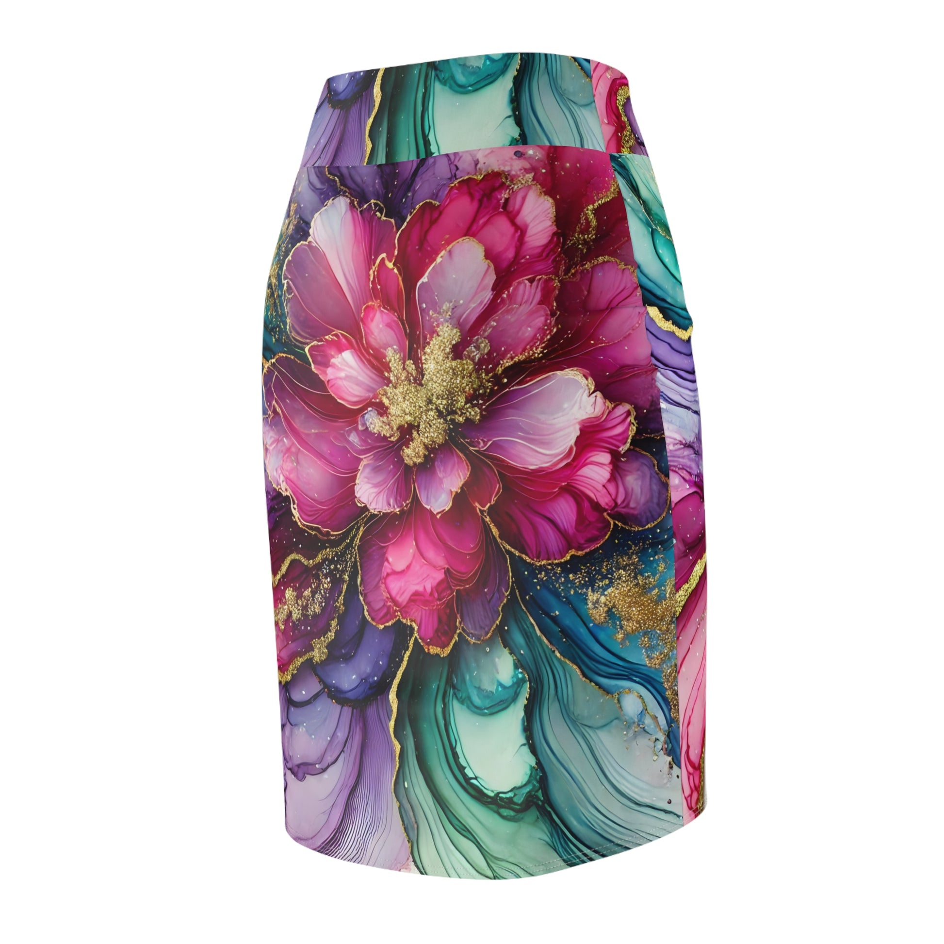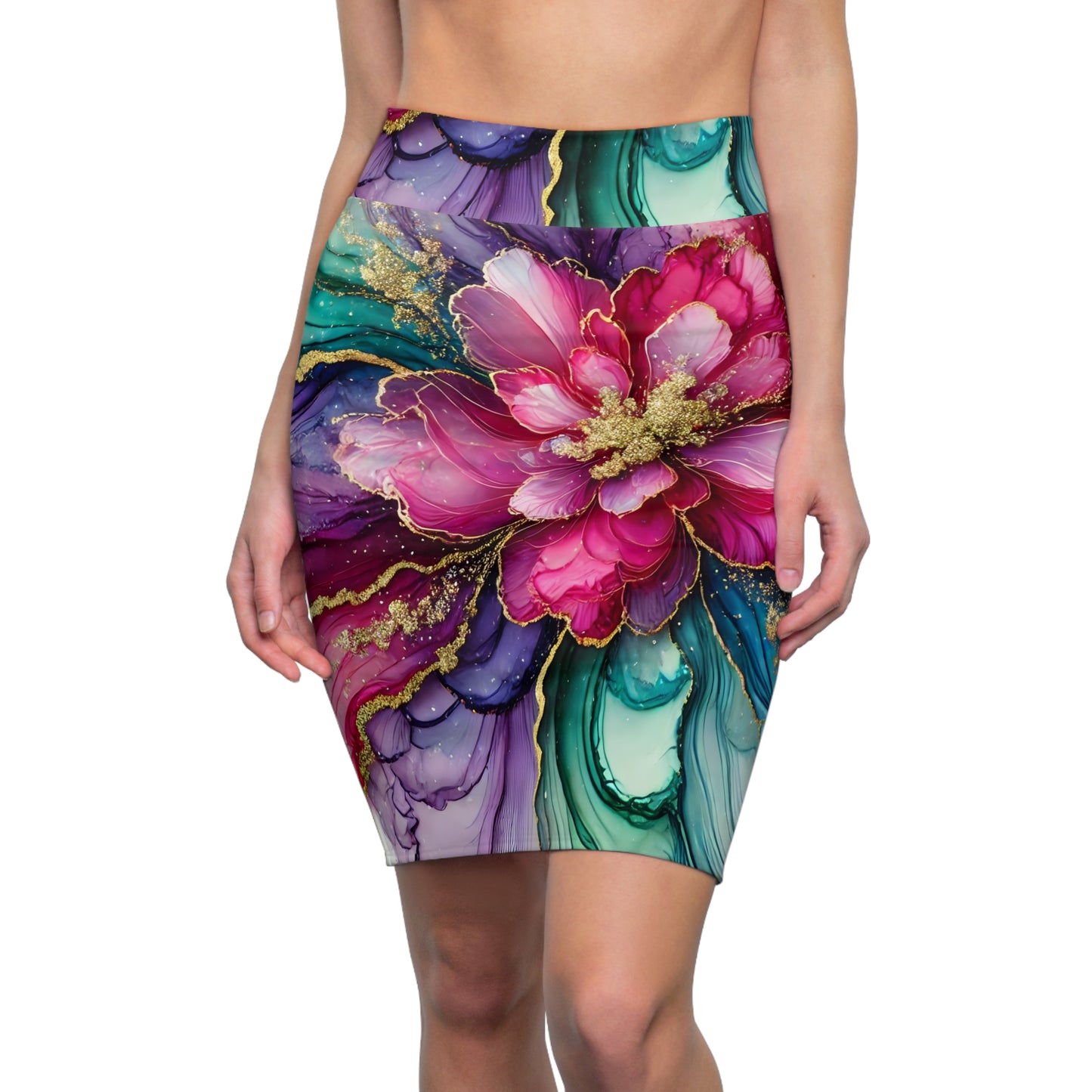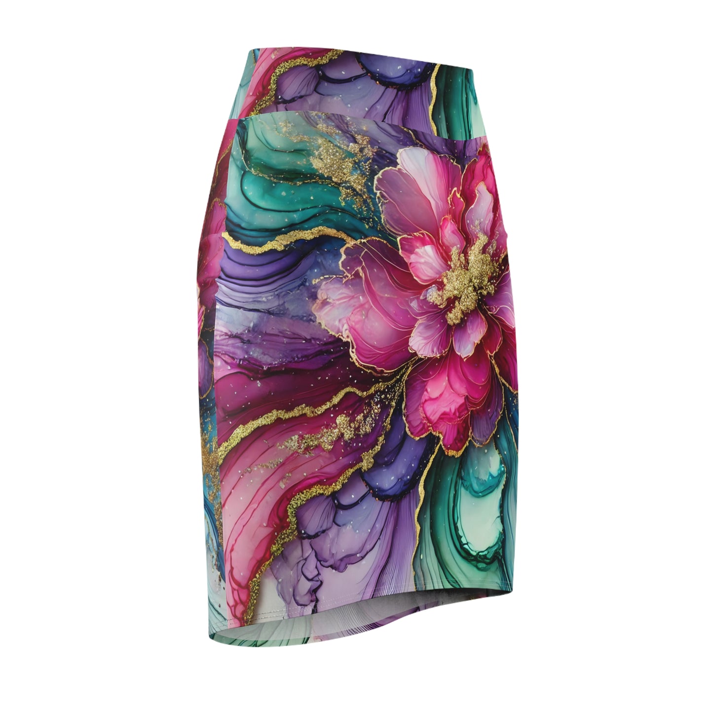 Verleihen Sie Ihrem Stil eine künstlerische Note! Holen Sie sich jetzt Ihren Cosmic Blossom Bleistiftrock und bringen Sie Ihre Einzigartigkeit zum Ausdruck!