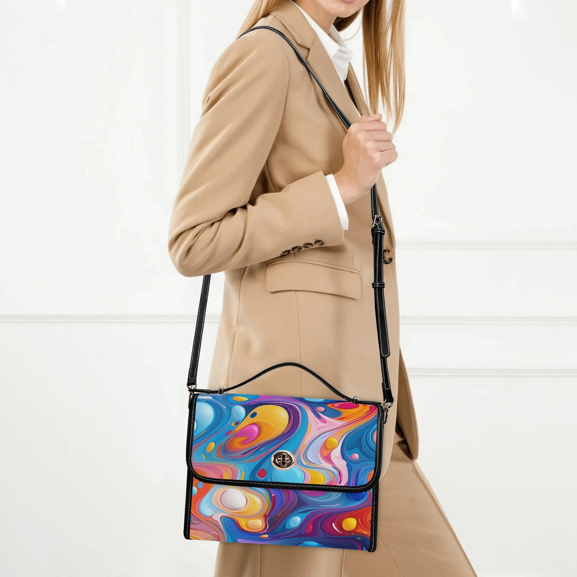 Verleihe deinem Outfit Eleganz und eine faszinierende Farbexplosion mit unsererFluid Colors Satchel Bag Umhängetasche.