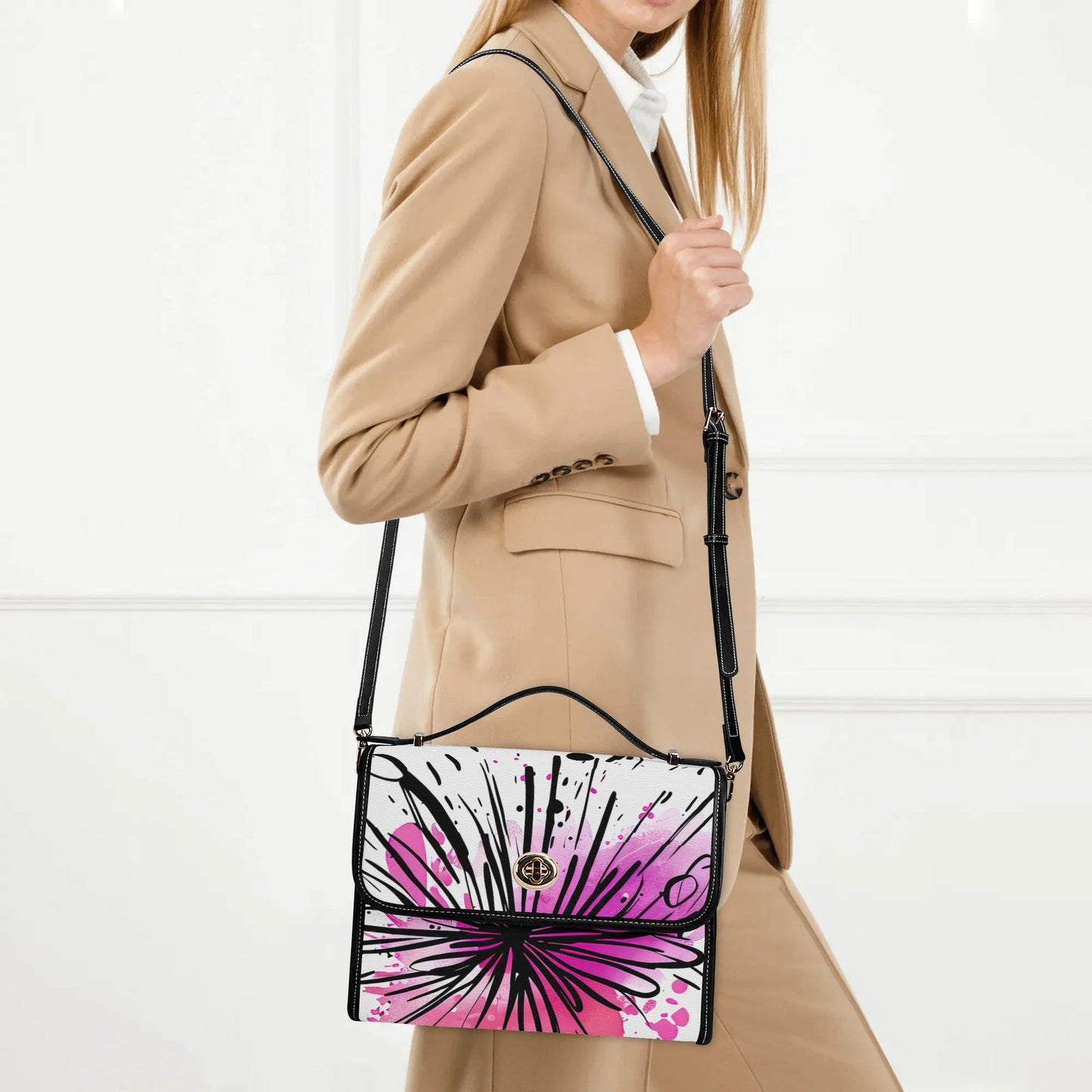 Das einzigartige Graffiti-Blüten-Design macht diese Tasche zu einem echten Blickfang und verleiht jedem Look eine moderne, dynamische Ausstrahlung.