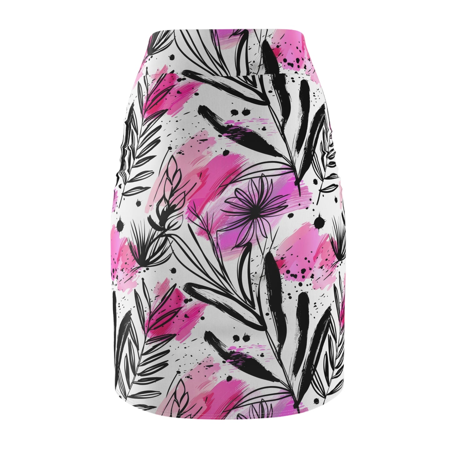 Erlebe mühelose Eleganz mit diesem Graffiti Blüten v2 Bleistiftrock!