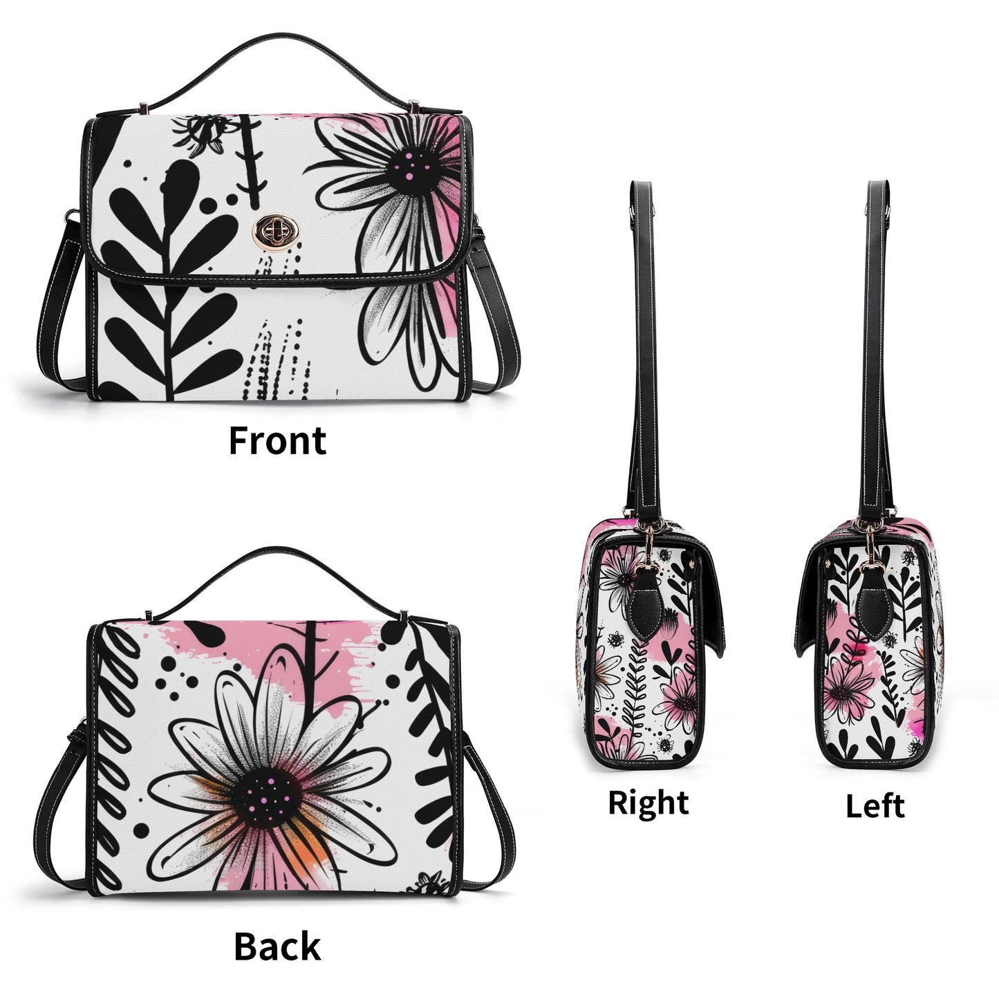 Sie ist aus hochwertigem Material gefertigt – wähle zwischen luxuriösem Premium PU-Leder, edlem Top-Grain-Leder für ein besonders exklusives Gefühl oder dem raffinierten Twill Faux Leather, das eine anspruchsvolle Optik und angenehme Textur für den täglichen Gebrauch bietet. Das einzigartige Graffiti-Blüten-Design macht diese Tasche zu einem echten Blickfang.