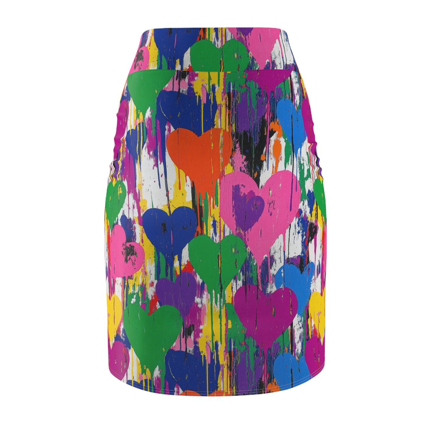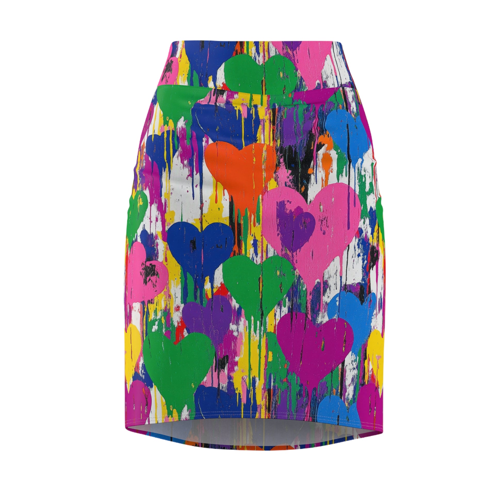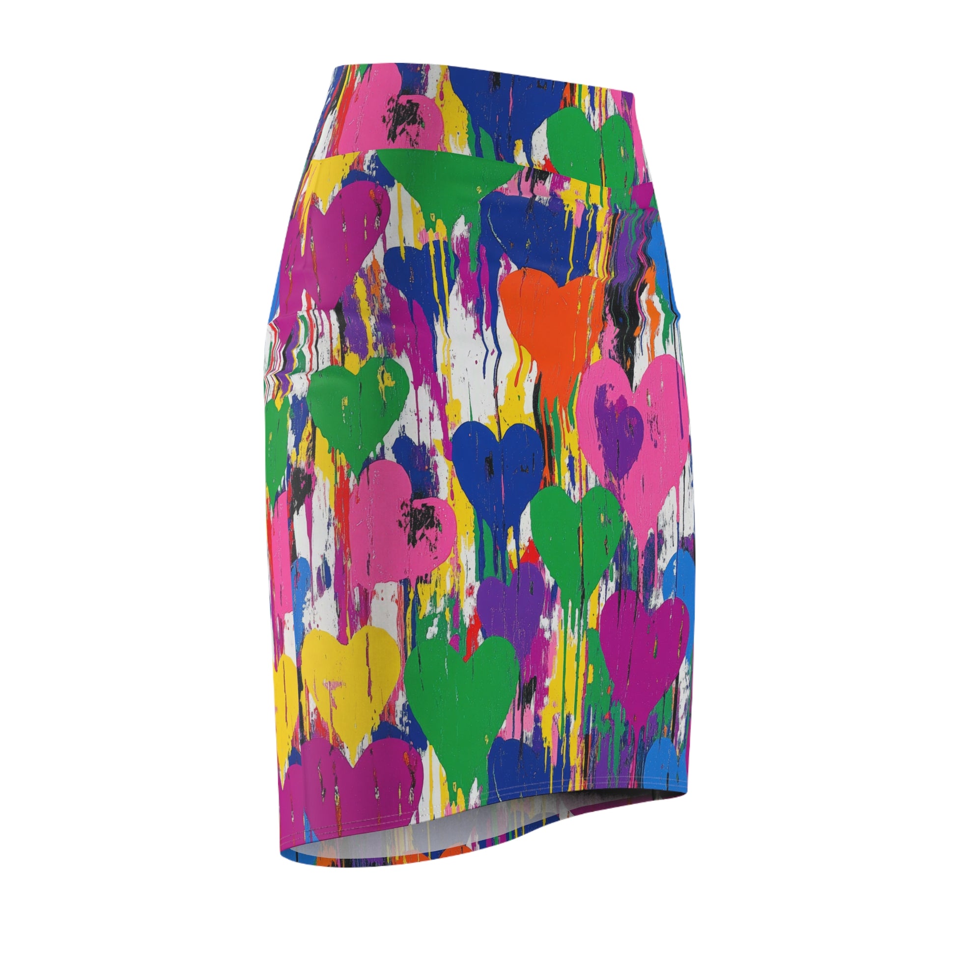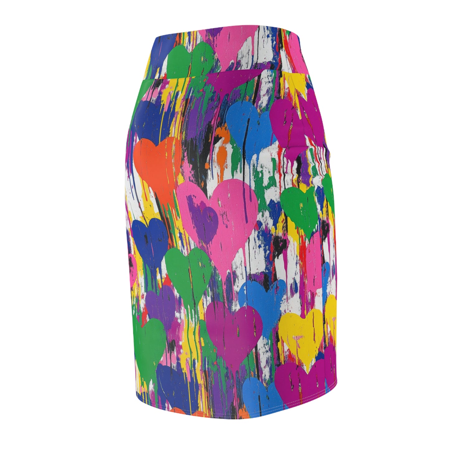 Zeig deine kreative Seite! Hol dir jetzt deinen Graffiti Hearts v10 Bleistiftrock und bringe Freude und Individualität in deinen Look!