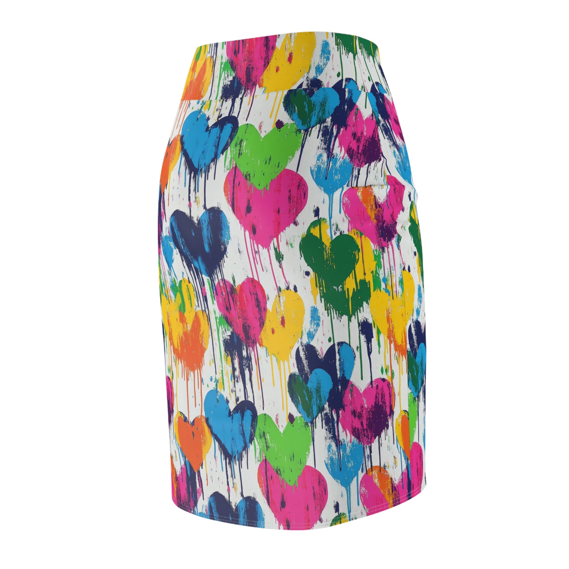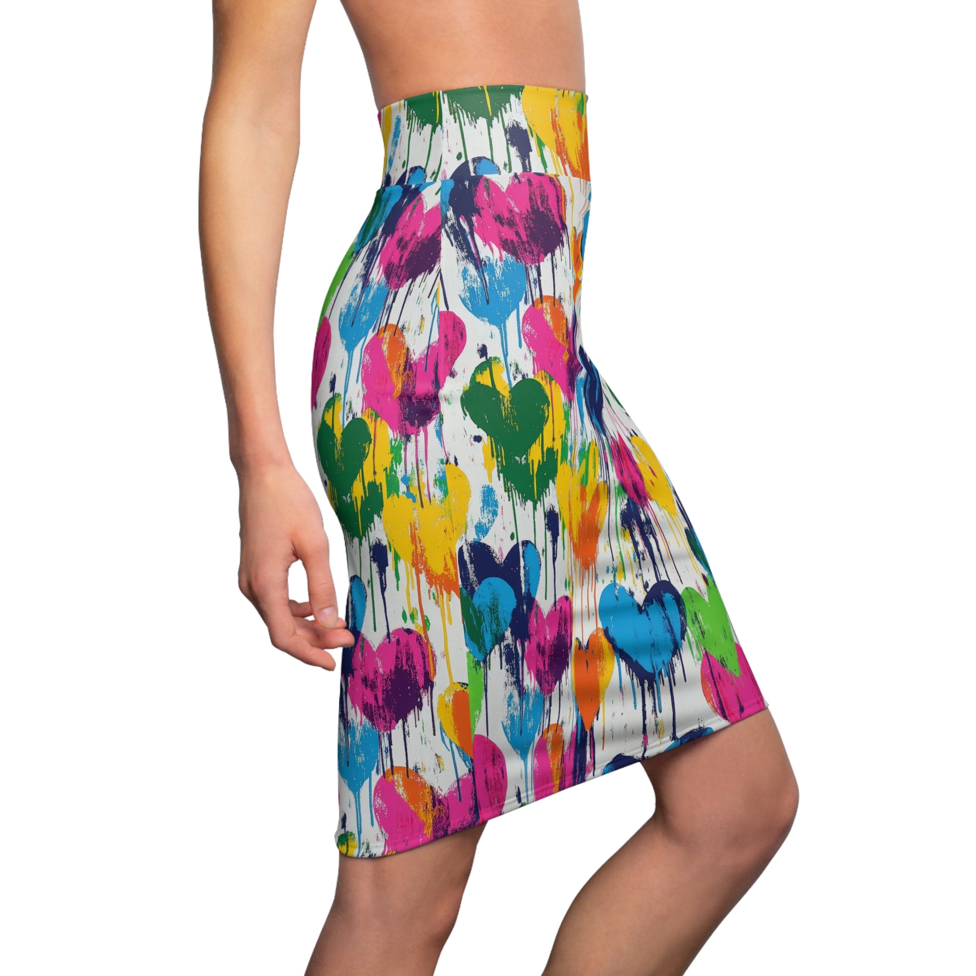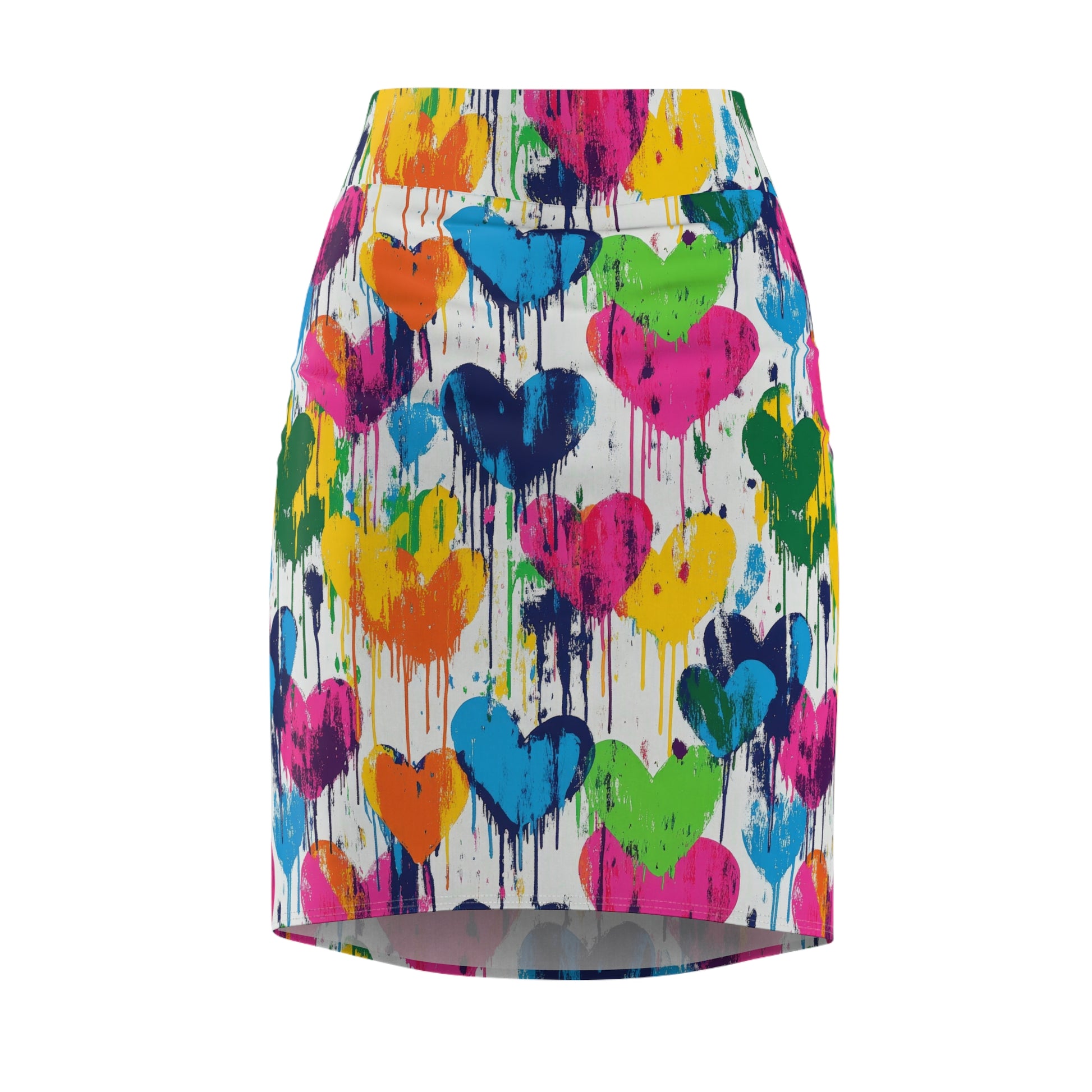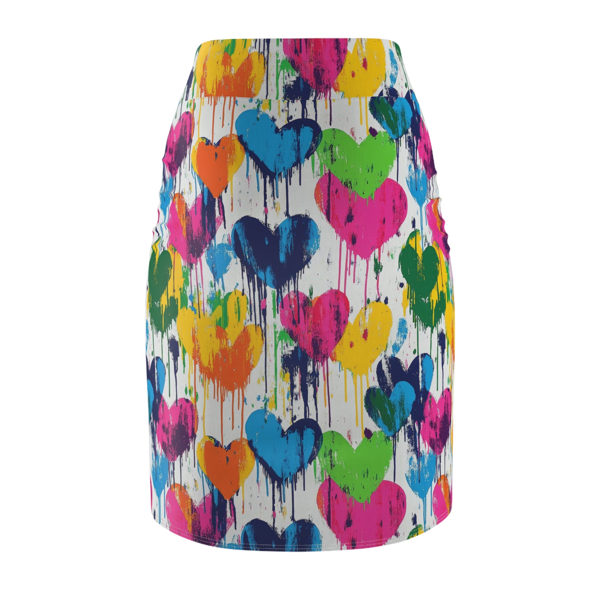Zeig deine kreative Seite! Hol dir jetzt deinen Graffiti Hearts v12 Bleistiftrock und bringe Freude und Individualität in deinen Look!