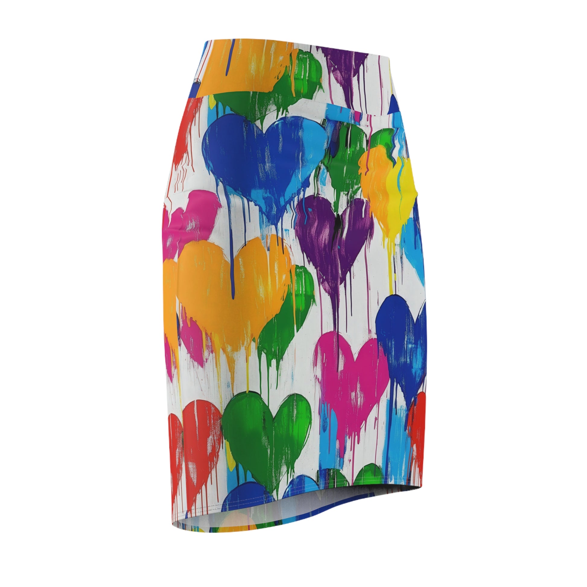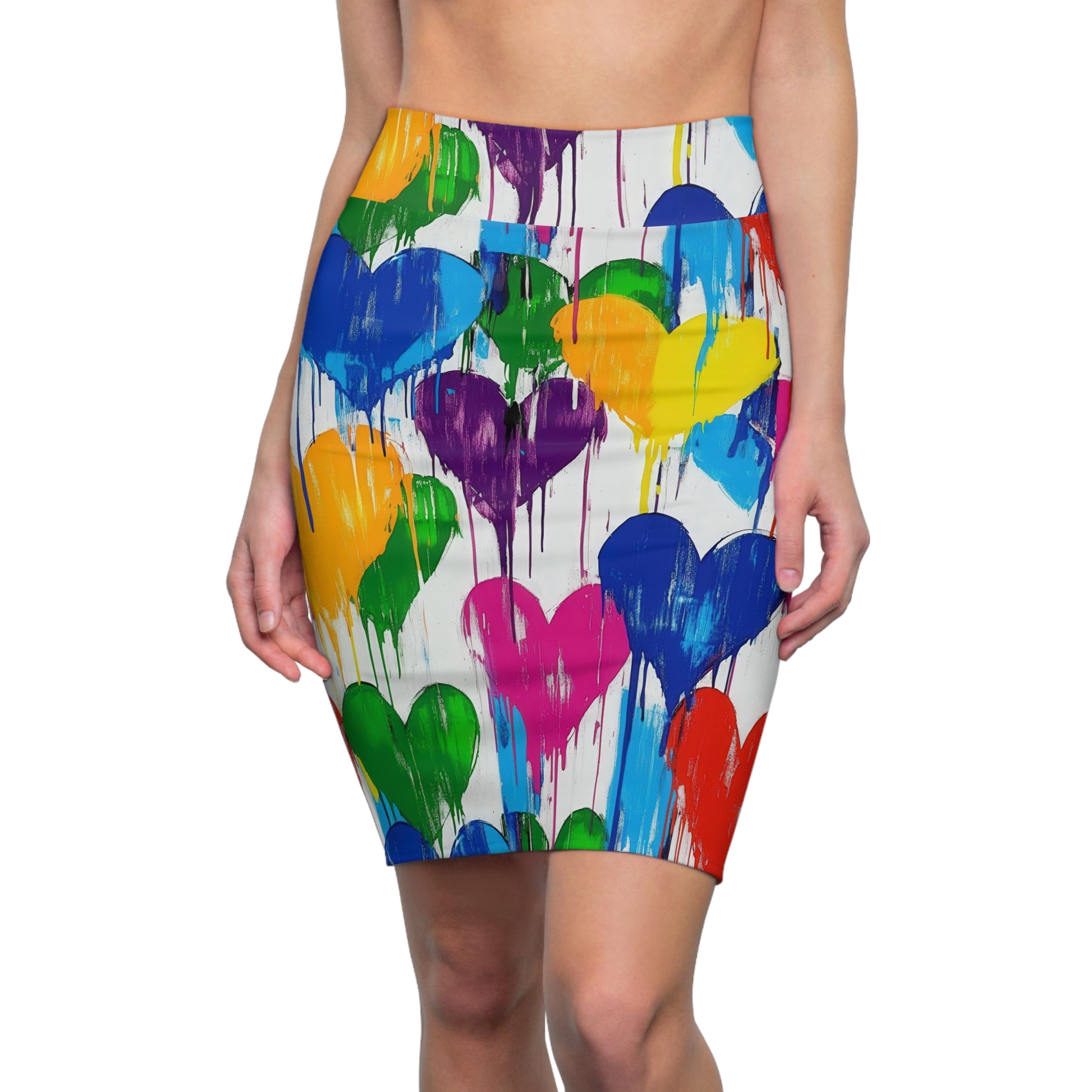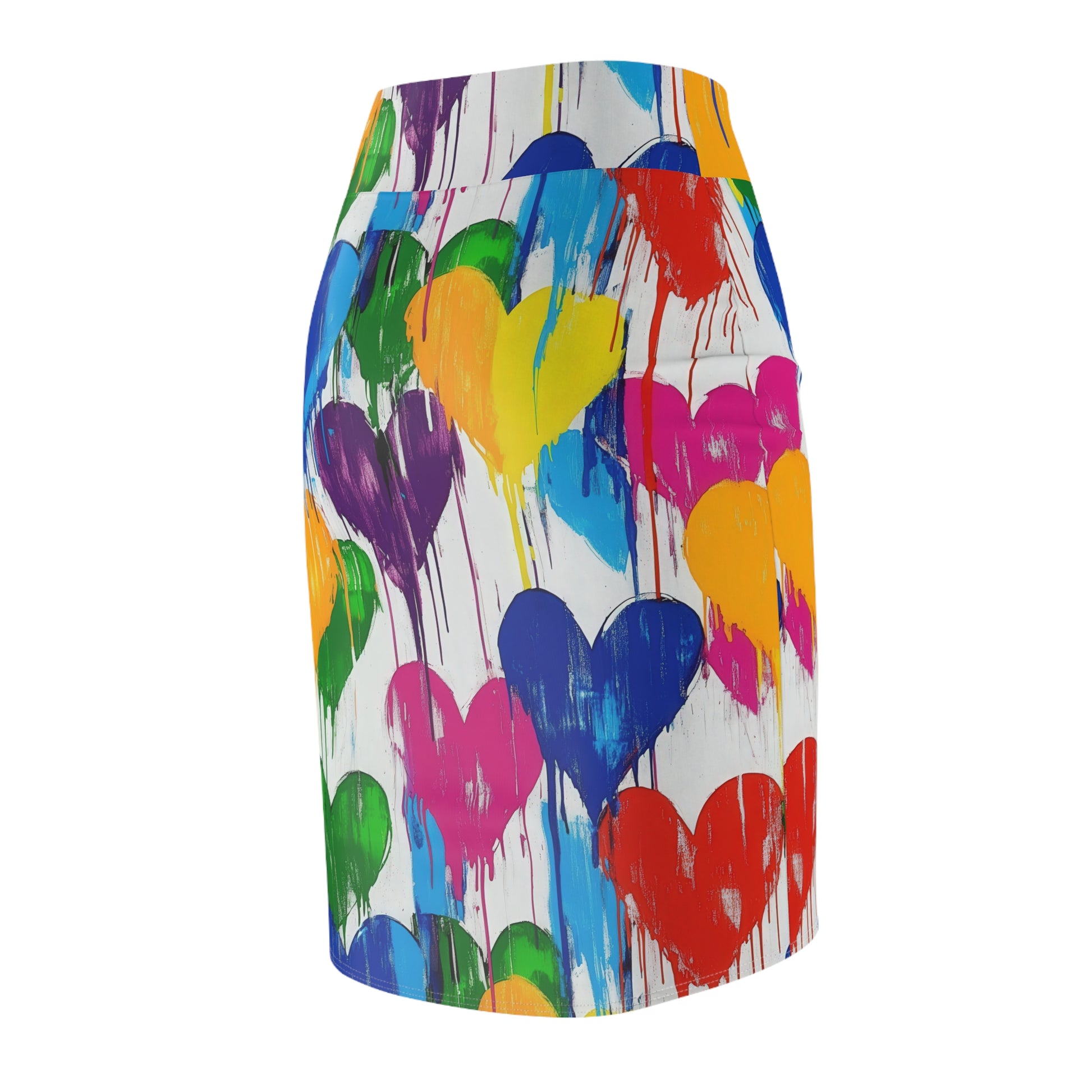 Zeig deine kreative Seite! Hol dir jetzt deinen Graffiti Hearts v2 Bleistiftrock und bringe Freude und Individualität in deinen Look!